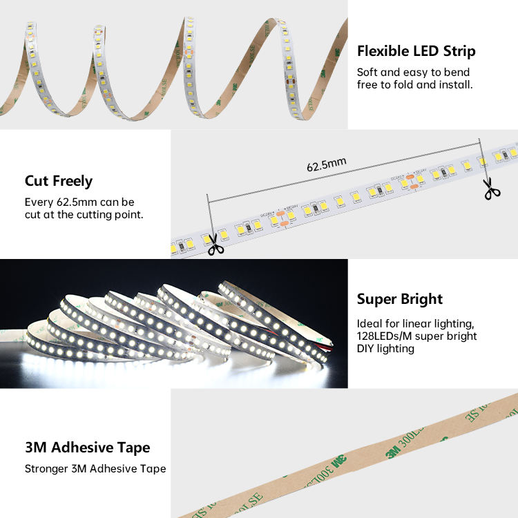 แถบไฟ LED แรงดันคงที่ DC24V 2220m/M 180lm/W 128leds/m ชนิด 2835