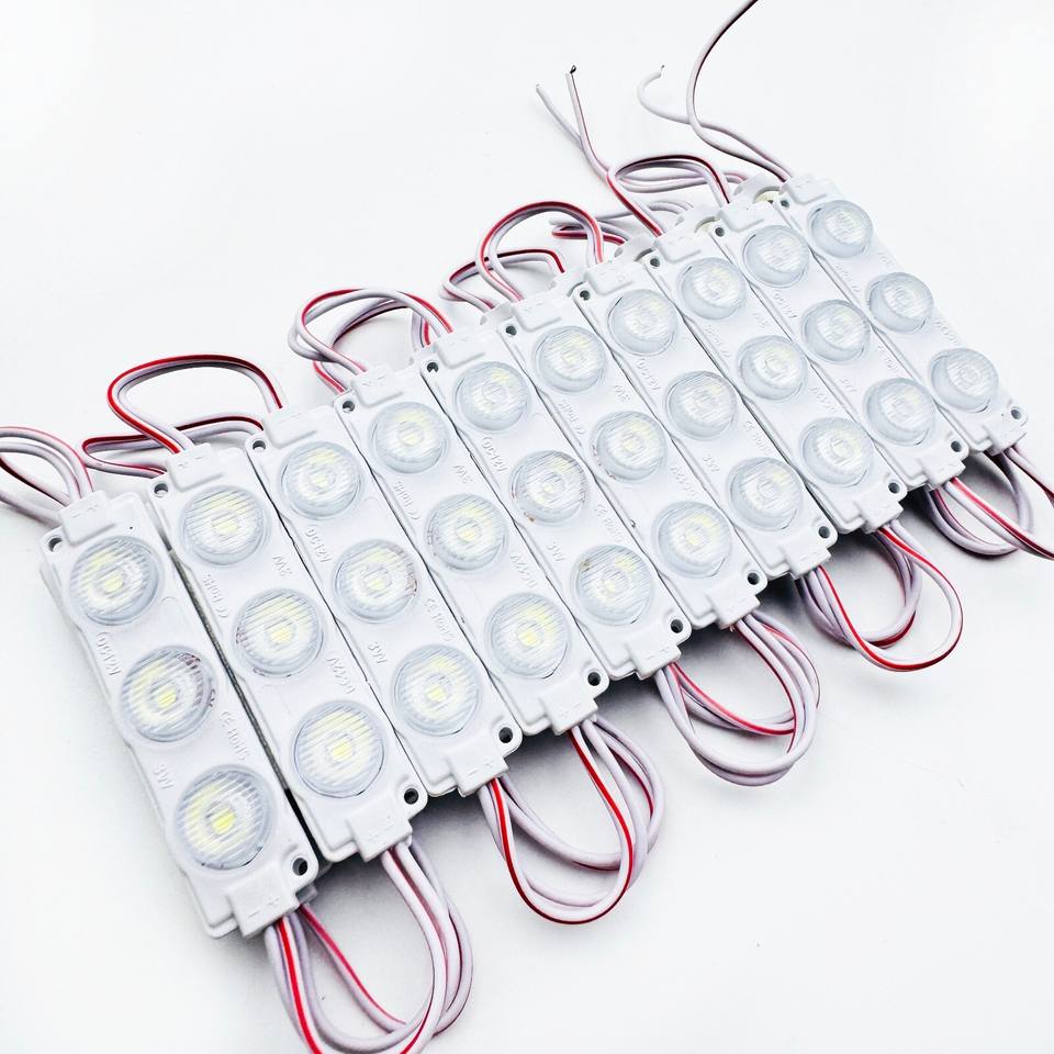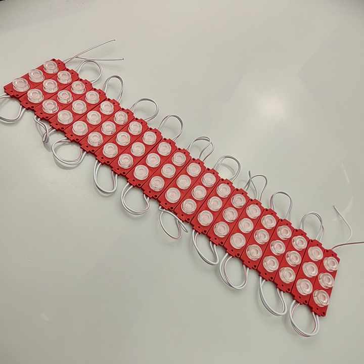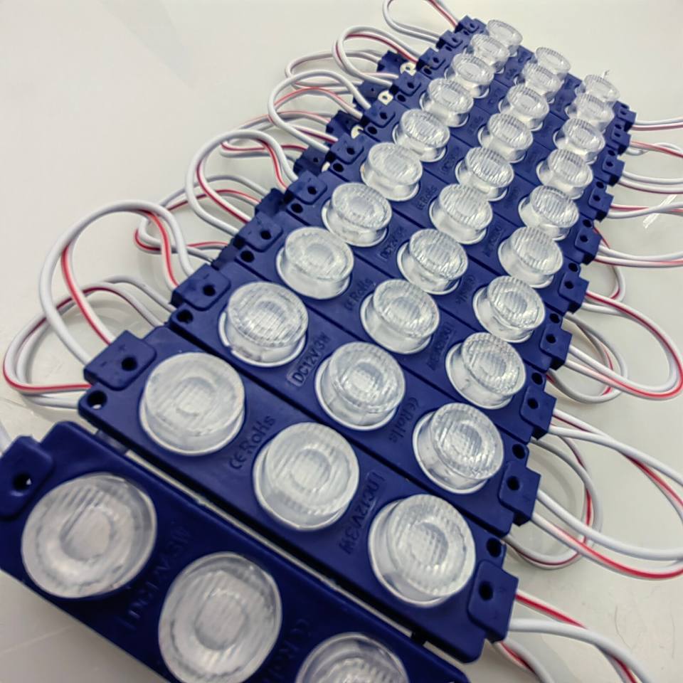 SMD2835 IP67 DC12V 24V 75 * 20 3030 เลนส์สะท้อนแสงแบบกระจาย หลอดไฟ LED เปอโยต์ แสงสีฟ้า แสงสีแดง แสงสีเขียว โมดูลหลอดไฟ LED 3 ดวง