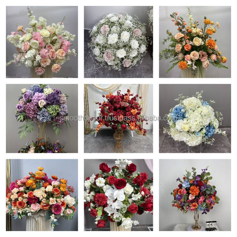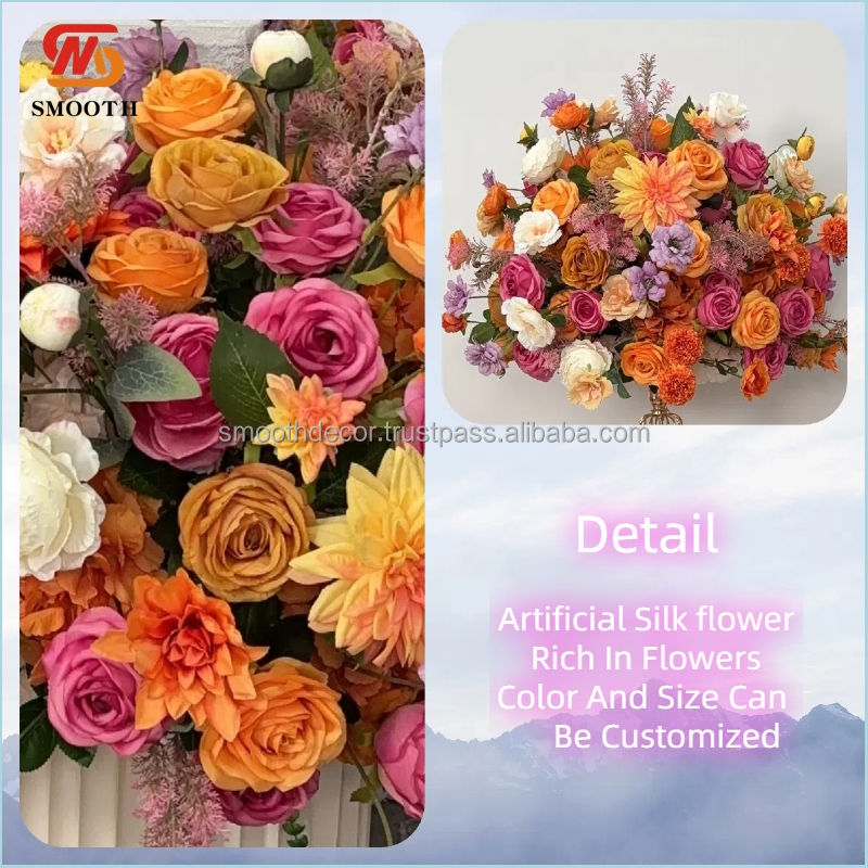 2024เรียบตกแต่งงานแต่งงานดอกไม้ประดิษฐ์ของขวัญแต่งงานกุหลาบผ้าปูโต๊ะลูกบอลสีส้มตรงกลาง