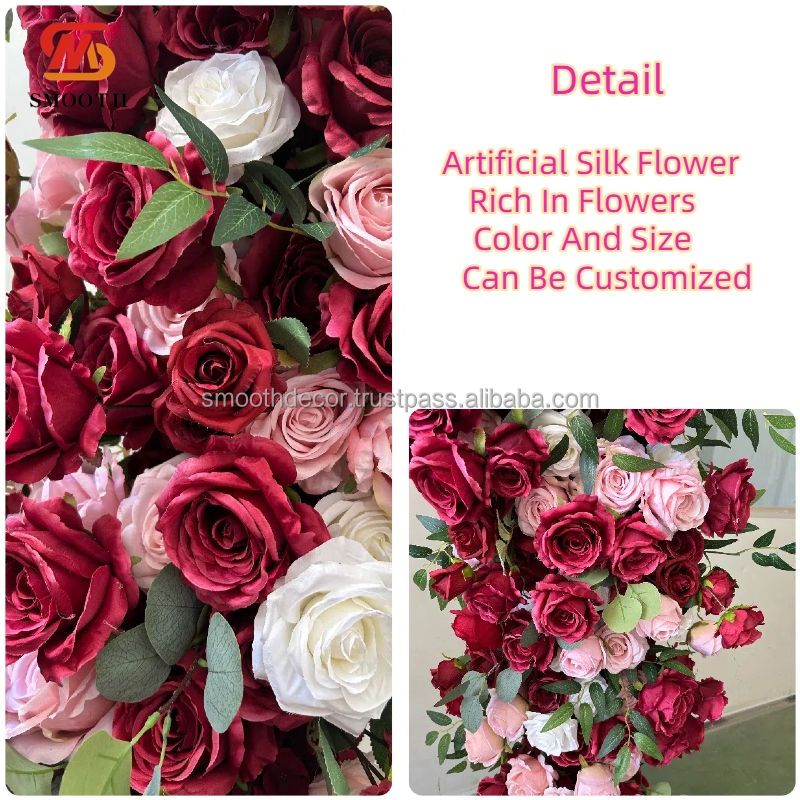 ฐานผ้า3D เรียบสามารถม้วนขึ้นได้คุณภาพสูงแผ่นซุ้มดอกไม้ประดิษฐ์ทำจากผ้าไหมเทียมฉากหลังตกแต่งงานแต่งงาน