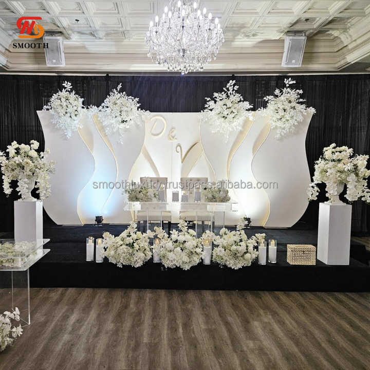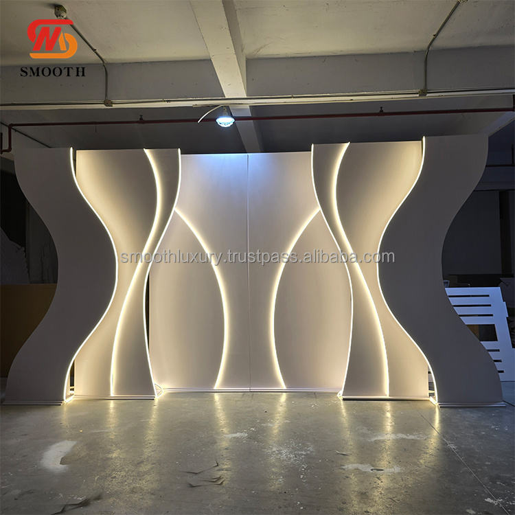 ซุ้มแต่งงานอะคริลิคกรอบ3D เรียบสีขาวพร้อมไฟ LED สำหรับฉากหลังปาร์ตี้และตกแต่งงานแต่งงาน