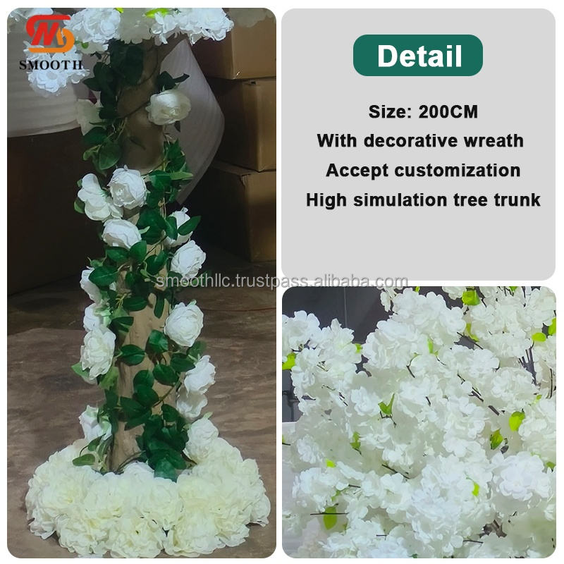 ต้นเชอรี่เทียมสีขาว5ft เรียบโต๊ะแต่งงานแกนกลางตกแต่งงานแต่งงานต้นซากุระ