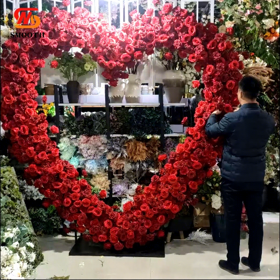 ฉากหลังดอกกุหลาบแดงสุดหรูหรา ขายดี สำหรับงานแต่งงาน รูปทรงหัวใจ ปรับขนาดได้ สำหรับงานปาร์ตี้และอีเว้นท์ต่างๆ