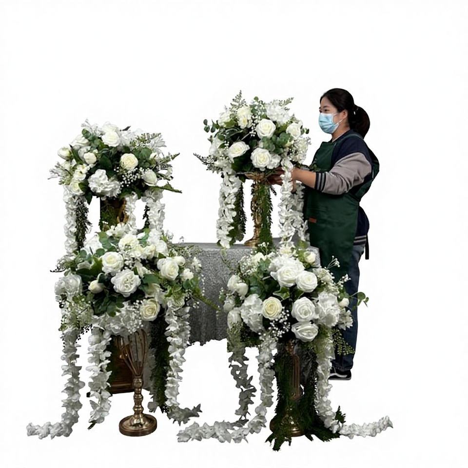 พวงดอกกุหลาบผ้าไหมเทียมแบบเรียบหรู ดีไซน์ไม่สมมาตร สามารถปรับขนาดได้ เหมาะสำหรับตกแต่งงานแต่งงาน
