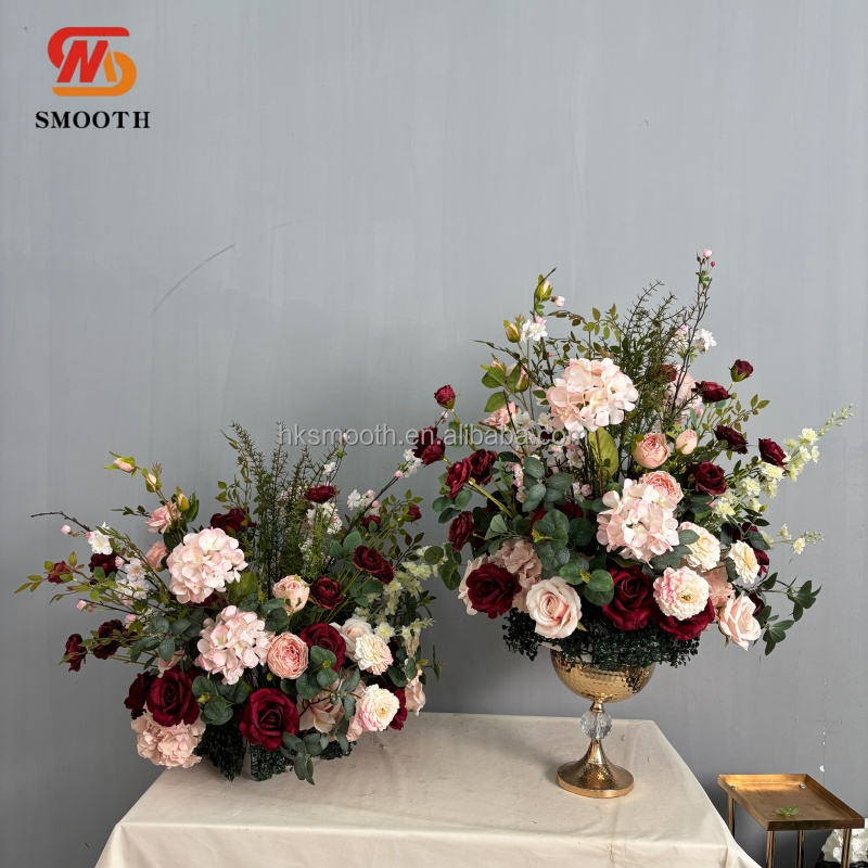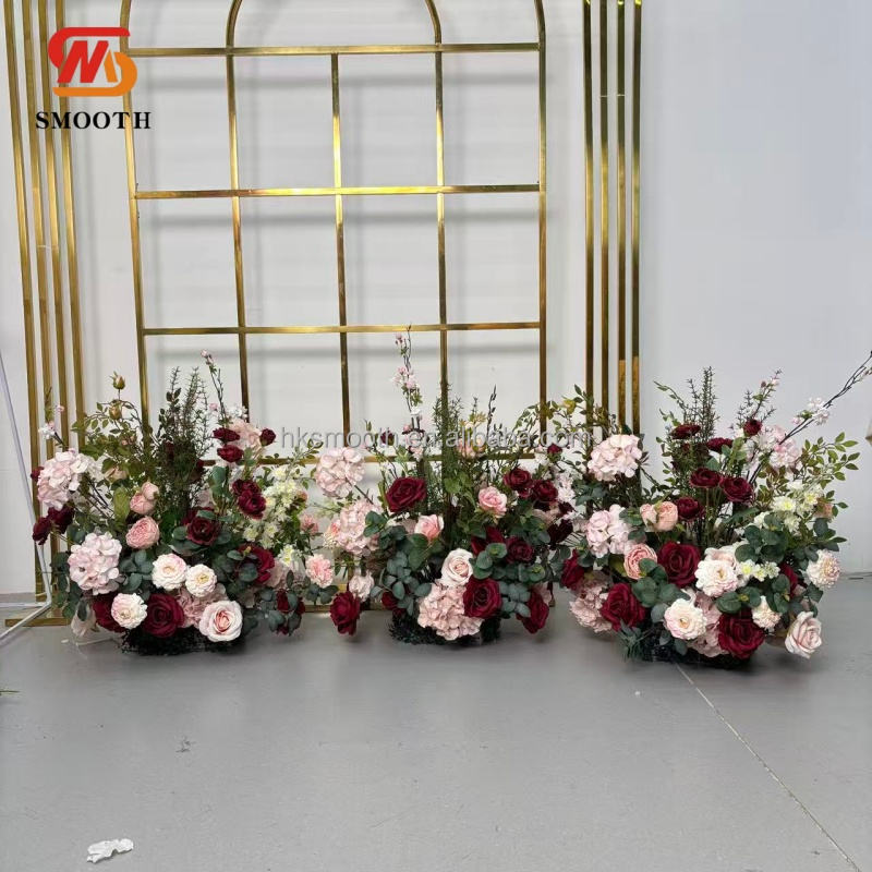 ดอกไม้ประดิษฐ์เรียงเป็นแถวสำหรับตกแต่งโต๊ะกลางงานแต่งงาน ผ้าปูทางเดินดอกไม้สำหรับงานแต่งงาน