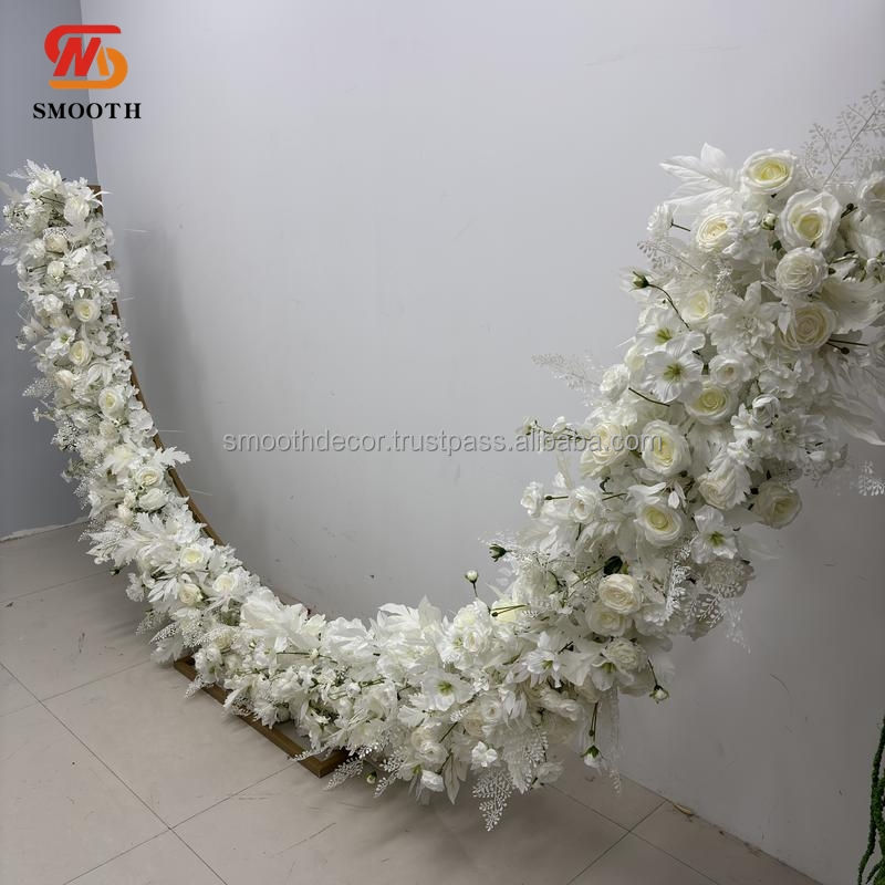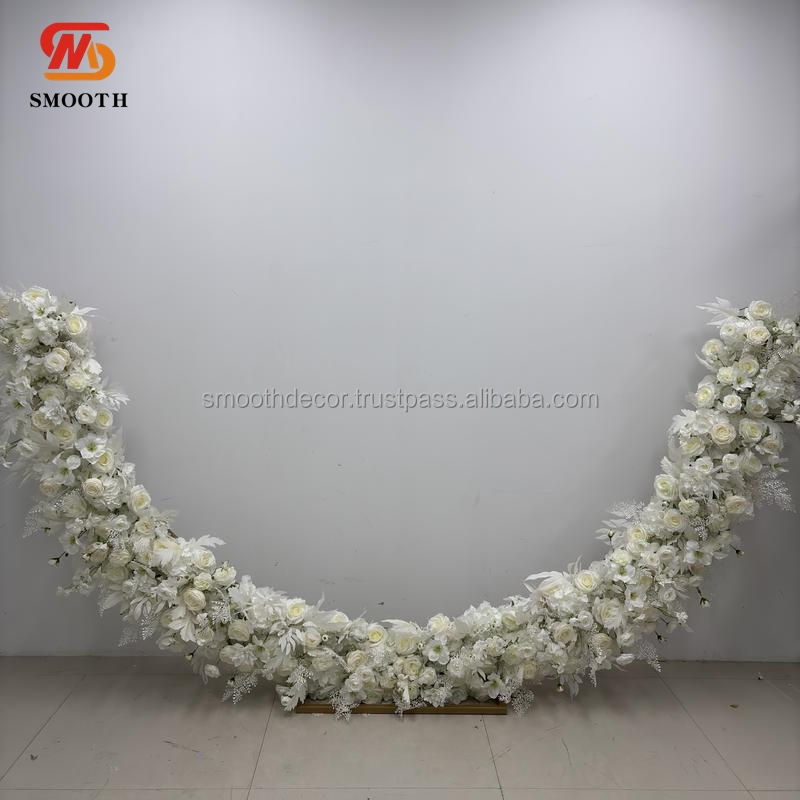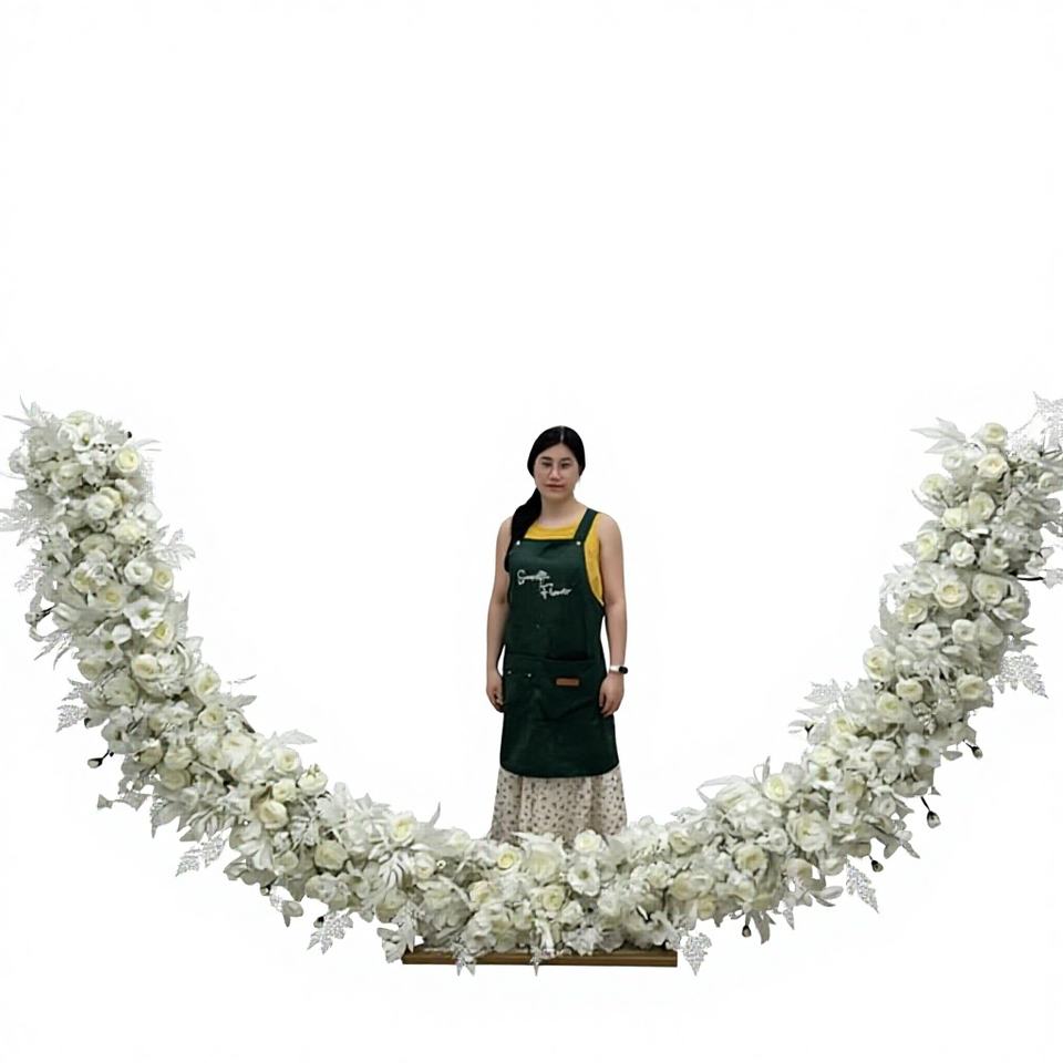ดอกกุหลาบผ้าไหมสีขาวเรียบเนียนประดิษฐ์ ขนาด 1.8-2.4 เมตร ดีไซน์แบบไม่สมมาตร สำหรับตกแต่งทางเดินงานแต่งงาน
