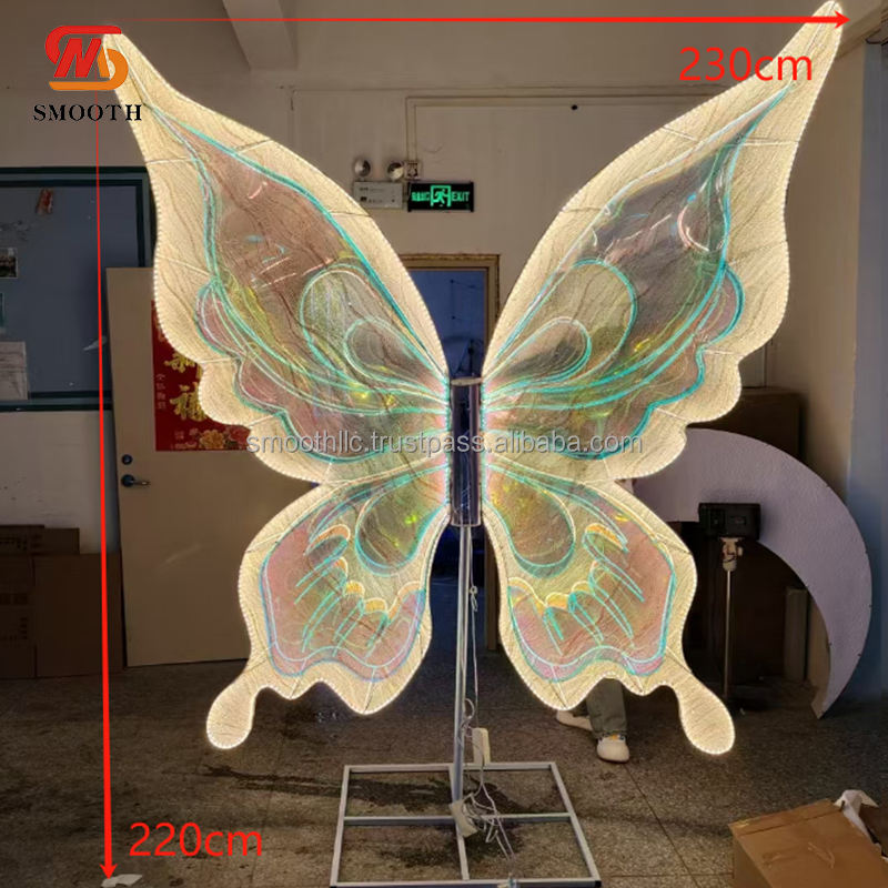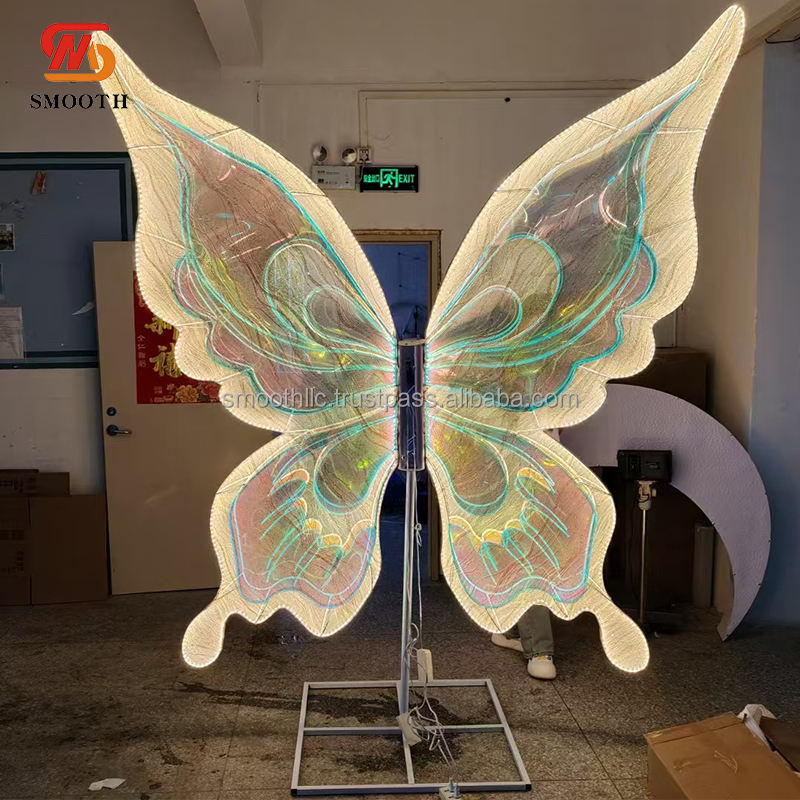 ของตกแต่งสำหรับงานเลี้ยงวันเกิดแบบเรียบมีไฟ LED สีรุ้งฉากหลังรูปผีเสื้อคงที่