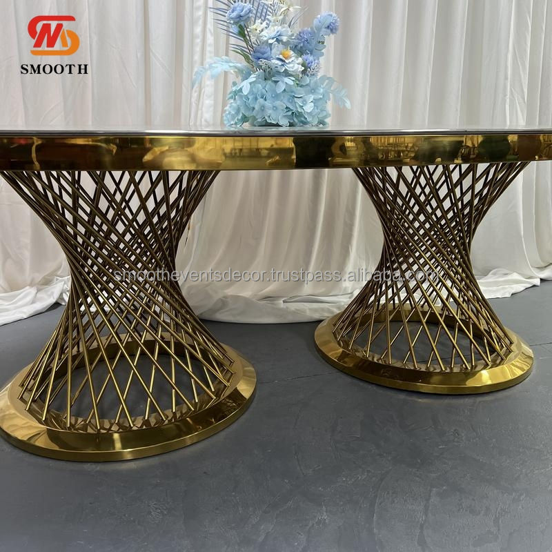 โต๊ะกระจกสีดำเงาเรียบหรูสำหรับงานอีเว้นท์ โต๊ะรับแขกงานแต่งงาน โต๊ะหลักสำหรับเจ้าสาวและเจ้าบ่าว พร้อมอุปกรณ์ตกแต่ง