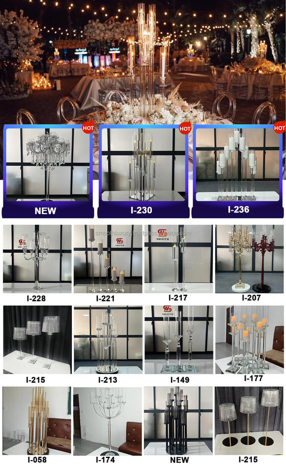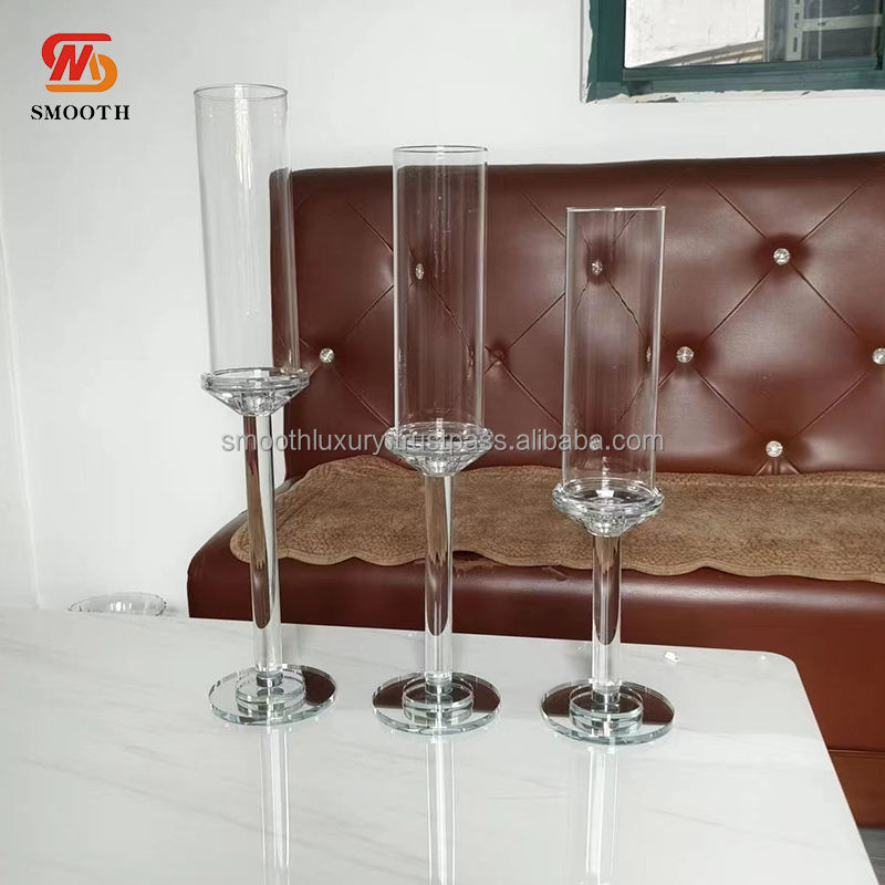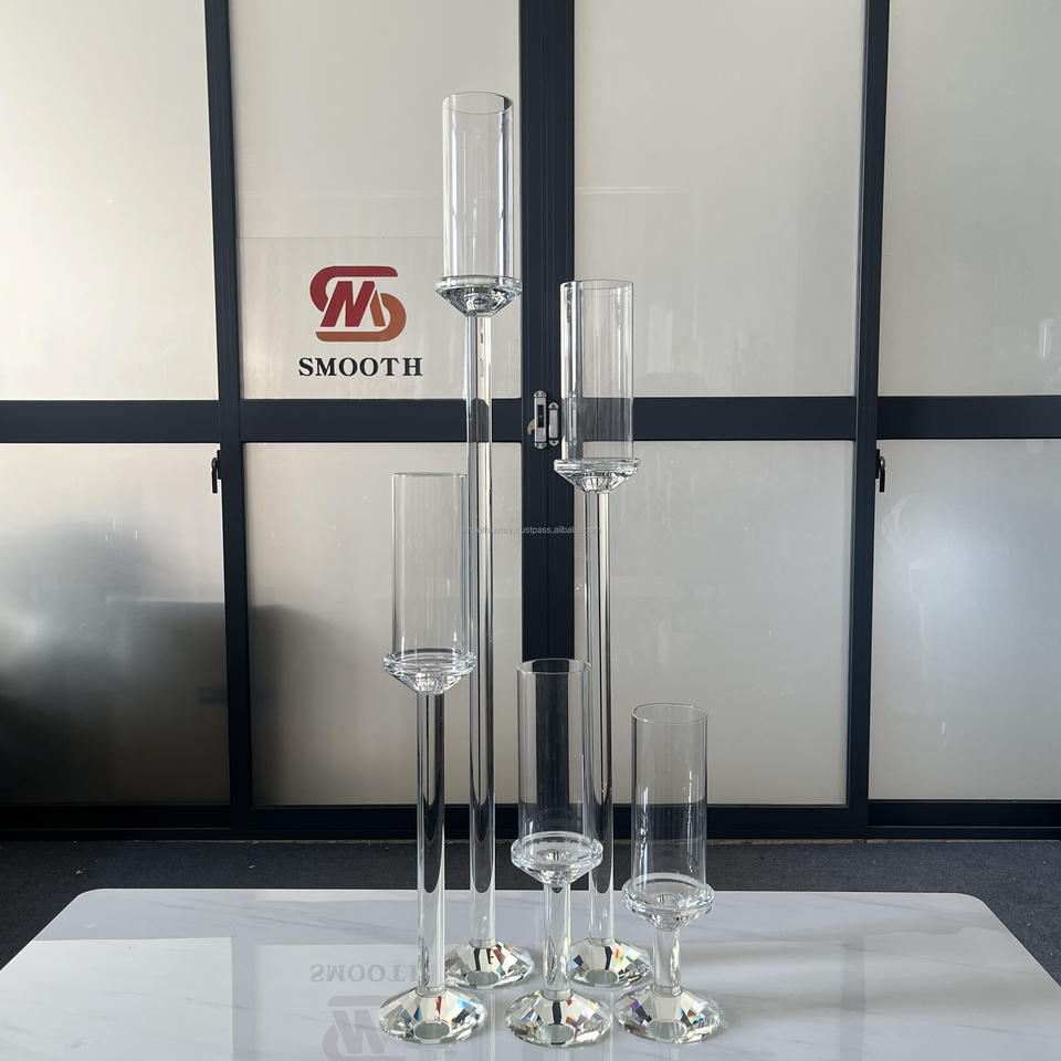 เชิงเทียนใสแบบแก้วคริสตัลความสูงแตกต่างกันสไตล์คลาสสิกเรียบเชิงเทียนสำหรับวางตรงกลางโต๊ะงานแต่งงาน