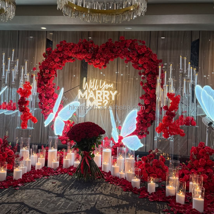 ซุ้มดอกไม้หัวใจสีแดงประดับด้วยดอกกุหลาบผ้าไหมเทียม