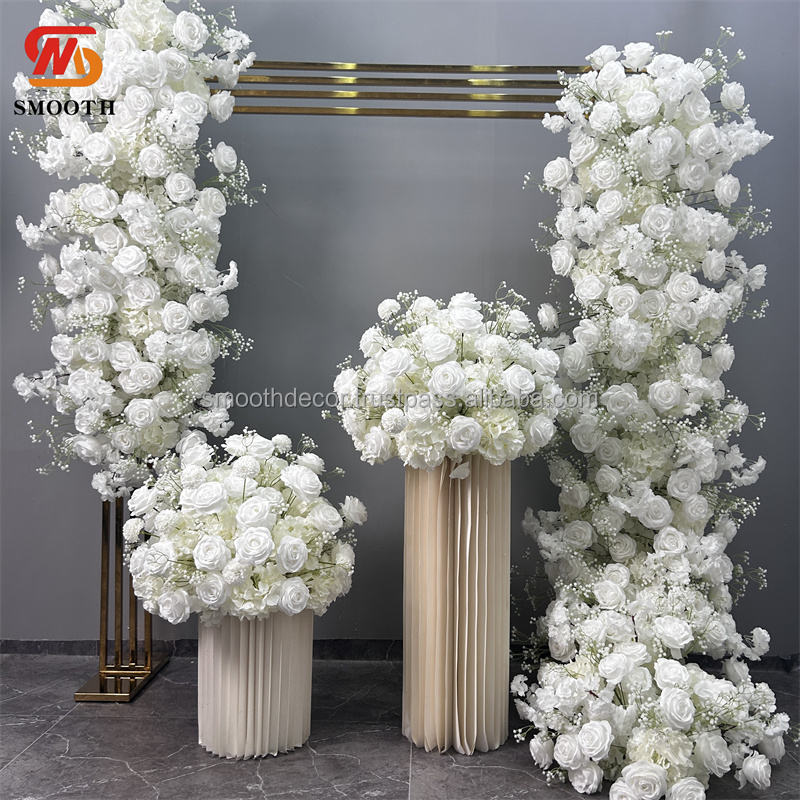 การจัดดอกกุหลาบสีขาวคลาสสิกแบบเรียบหรู ด้วยดอกกุหลาบผ้าไหมประดิษฐ์ ปรับขนาดได้ตามต้องการ สำหรับตกแต่งโต๊ะงานแต่งงาน