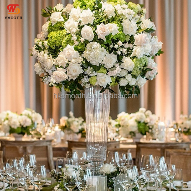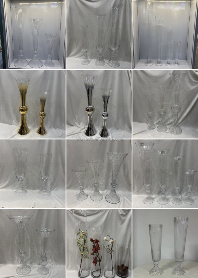 แจกันแก้วทรงแตรขนาด 24 นิ้ว ดีไซน์ลายริ้ว สำหรับตกแต่งงานแต่งงาน