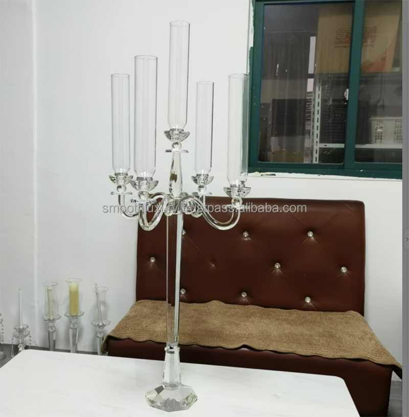 เชิงเทียนคริสตัลแบบเรียบสำหรับวางตรงกลางโต๊ะงานเต่งงานเชิงเทียนใสที่วางตรงกลางของตกแต่งงานแต่งงาน