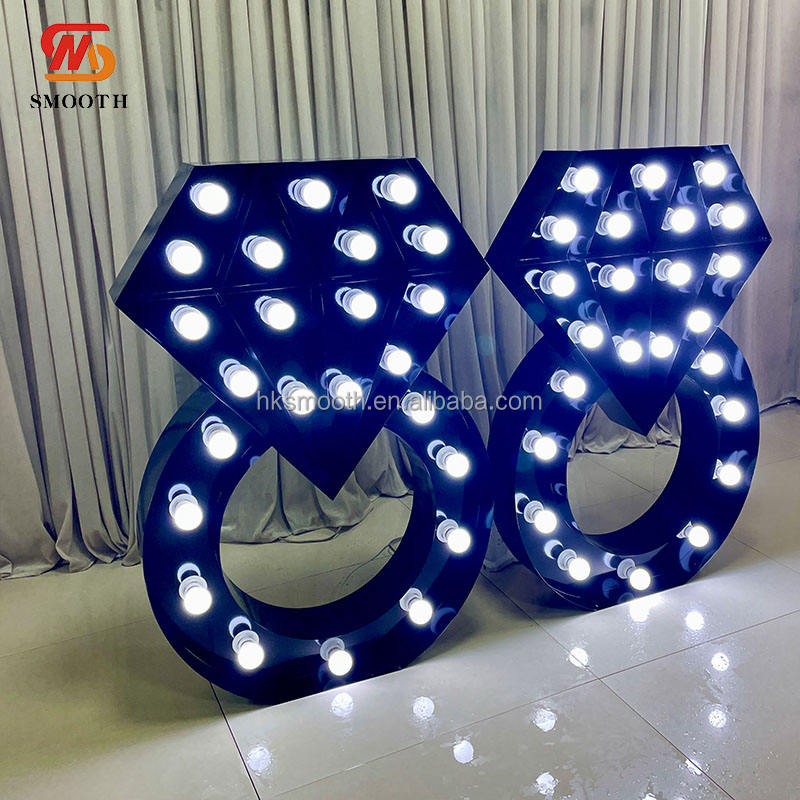 ไฟประดับตัวเลข/ตัวอักษร LED รูปแหวนเพชรขนาดใหญ่ ทำจากโลหะ ขนาด 3 ฟุต 4 ฟุต 5 ฟุต