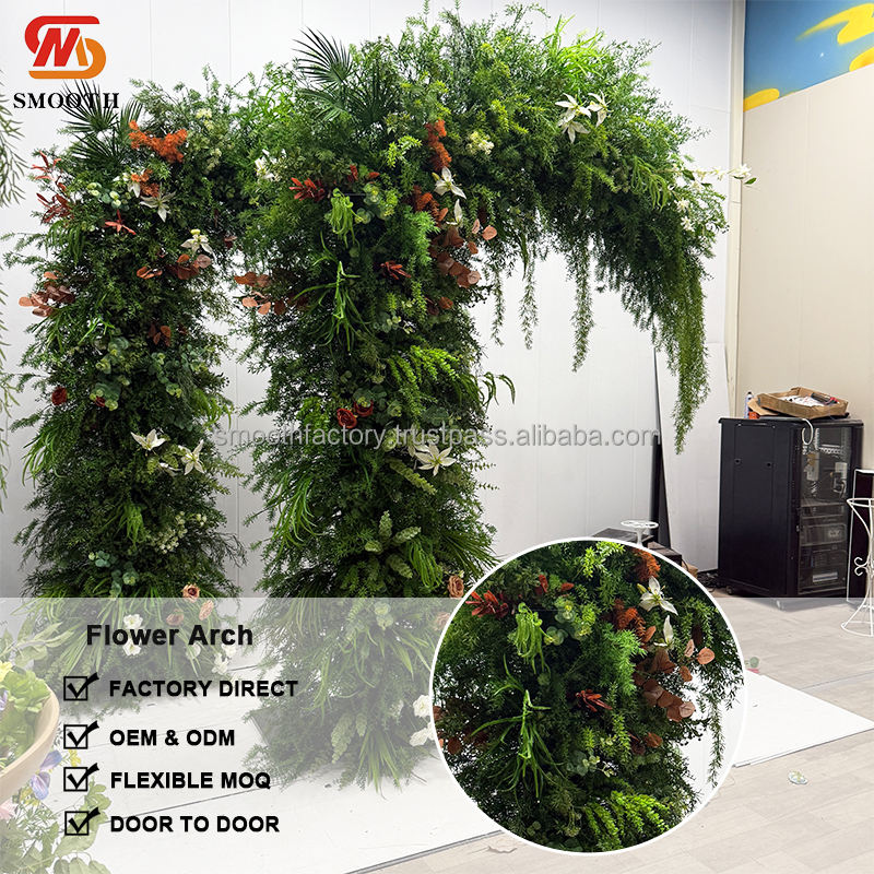 ซุ้มดอกไม้สีเขียวที่กำหนดเองได้อย่างราบรื่นพร้อมขาตั้งฉากหลังงานแต่งงานดอกไม้สีขาว