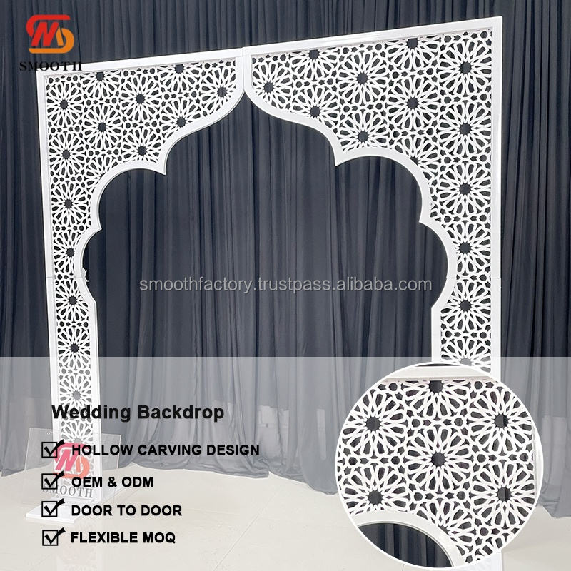 ฉากหลังสไตล์อินเดียแบบปรับแต่งได้เรียบเนียนสีทองหรูหราสลักลายซุ้มแต่งงานสำหรับ eevnts