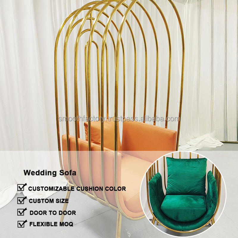 เก้าอี้โซฟากรงนกสแตนเลสทรงรีสำหรับตกแต่งงานแต่งงานเก้าอี้โซฟาเดี่ยวทรงรีออกแบบได้ตามต้องการ