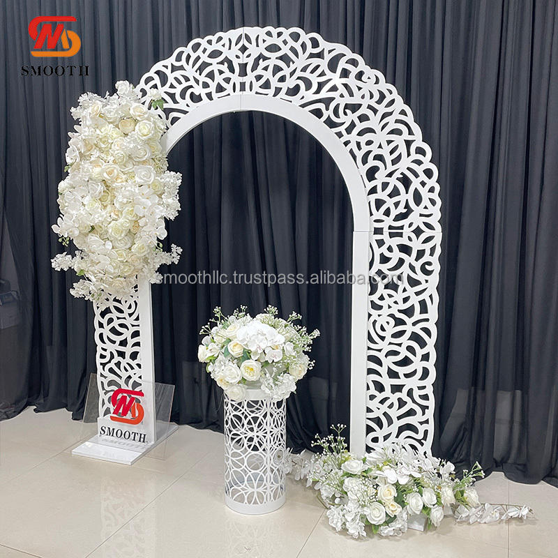 ซุ้มโค้งโค้งสำหรับงานแต่งงานฉากหลังโลหะเหล็กสีขาวทรงกลมเรียบออกแบบได้ตามที่ต้องการ