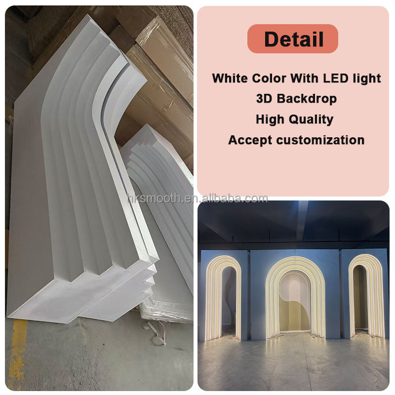 ซุ้มโค้งงานแต่งงานสุดหรูแบบกำหนดเองได้ ทำจากพีวีซีสีขาว 3 มิติ พร้อมไฟ LED สำหรับตกแต่งผนังฉากหลังงานแต่งงาน