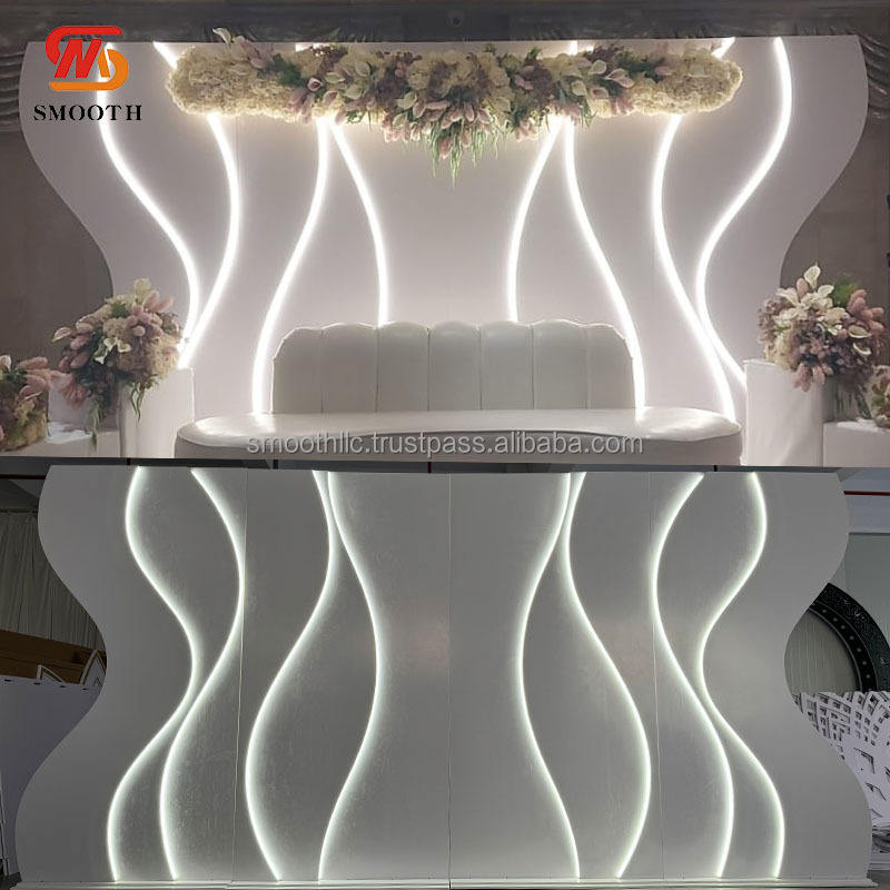 ฉากหลังงานแต่งงาน งานวันเกิด งานเลี้ยง งานรับรอง แบบเรียบหรู ปรับแต่งได้ ทำจากพีวีซีสีขาว พร้อมไฟ LED