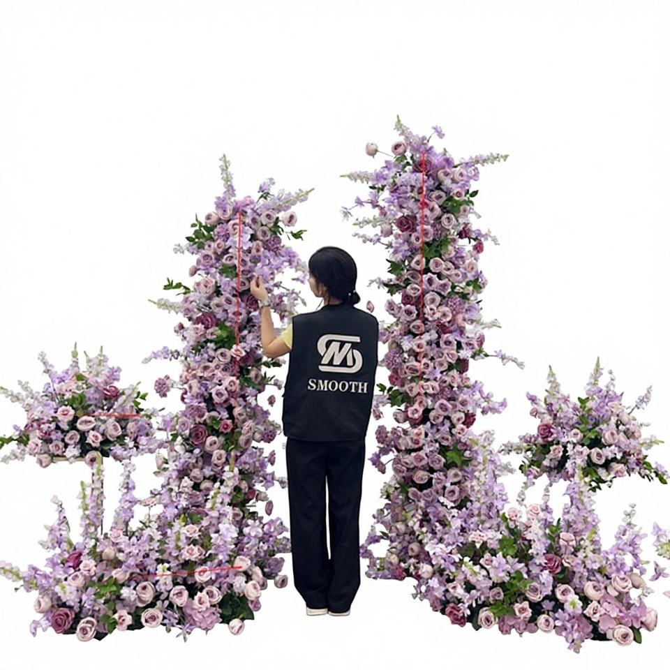 ซุ้มดอกกุหลาบผ้าไหมประดิษฐ์แบบเรียบหรู ดีไซน์ไม่สมมาตร สำหรับตกแต่งฉากหลังงานแต่งงาน