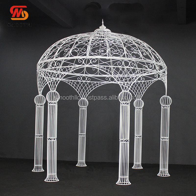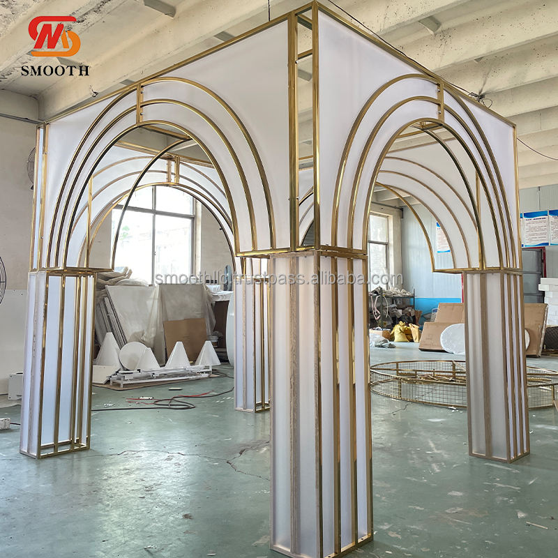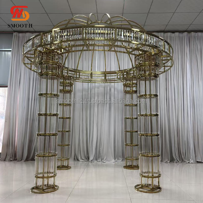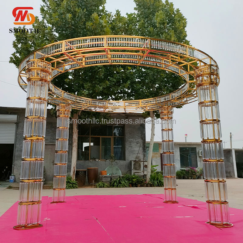 ซุ้มเหล็กกลมสแตนเลสสีทองแบบกลมสำหรับงานแต่งงานงานกลางแจ้งปรับแต่งได้อย่างเรียบเนียน