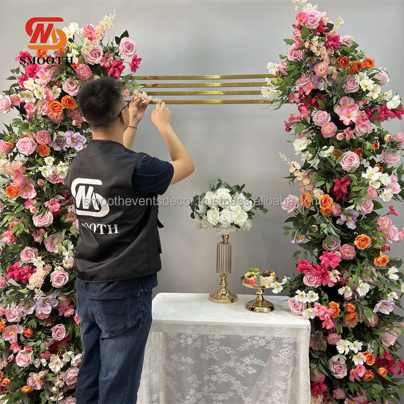 ซุ้มดอกไม้ประดิษฐ์สีชมพูแบบกำหนดเองสำหรับตกแต่งงานแต่งงาน