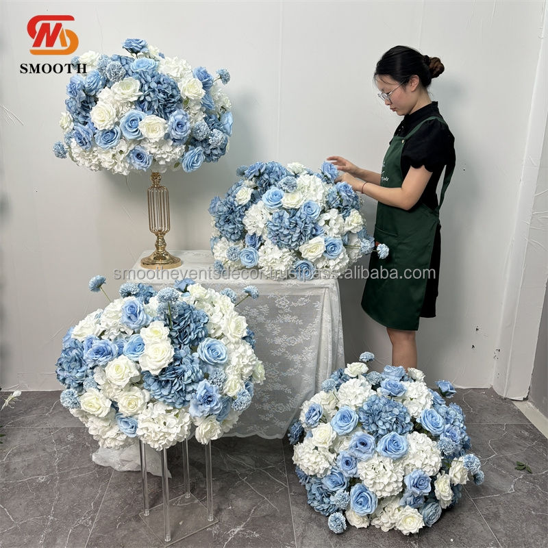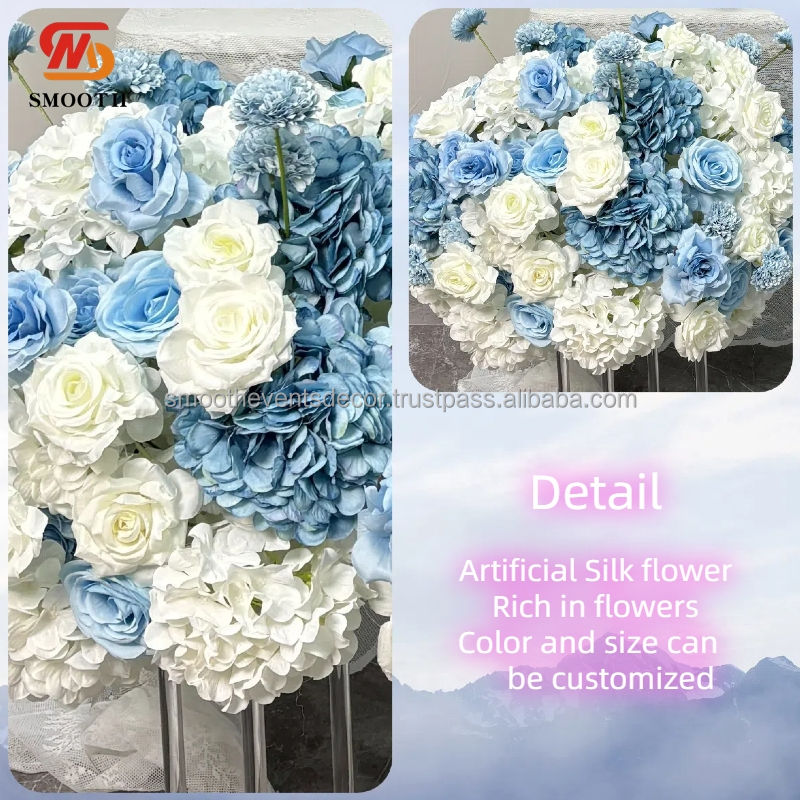 ลูกบอลดอกไม้ประดิษฐ์สำหรับงานแต่งงานรูปกุหลาบสีฟ้าสีขาวขนาดใหญ่ชื่อผลิตภัณฑ์