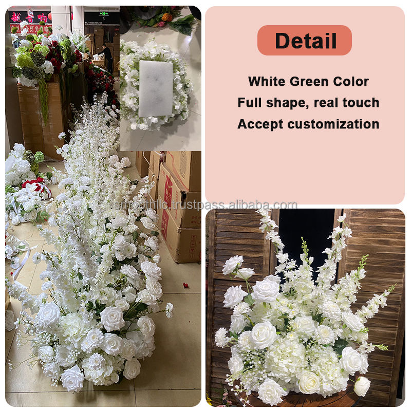 ช่อดอกไม้สีขาวสำหรับตกแต่งพื้นทางเดินงานแต่งงานงานตามสั่งเรียบ