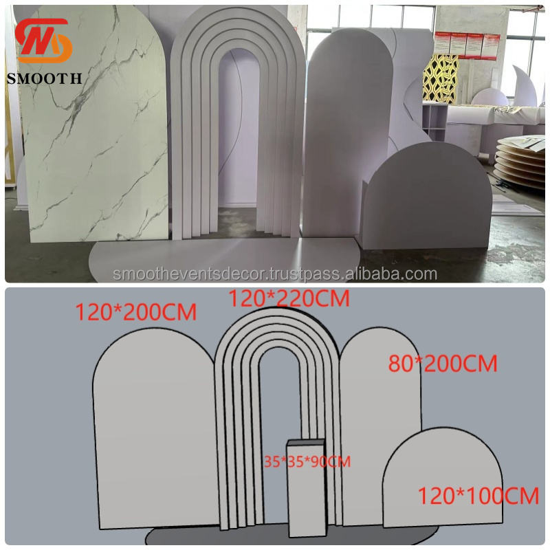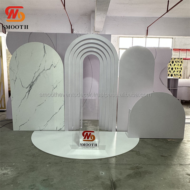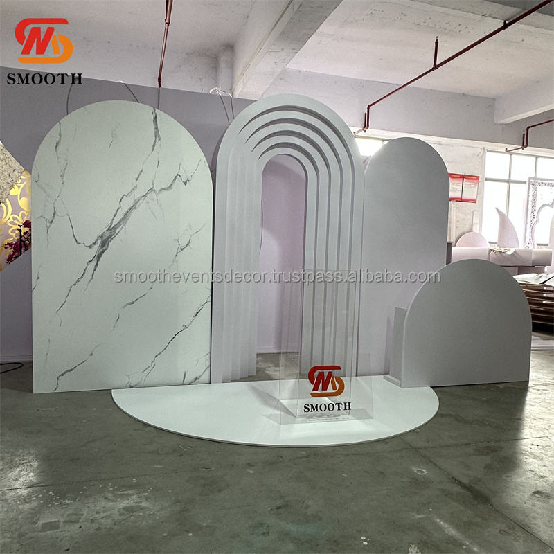 SMOOTH Customized White PVC Backdrop Wedding Event Stage Acrylic Arch Door Backdrop Baby Shower Backdrop Decoration