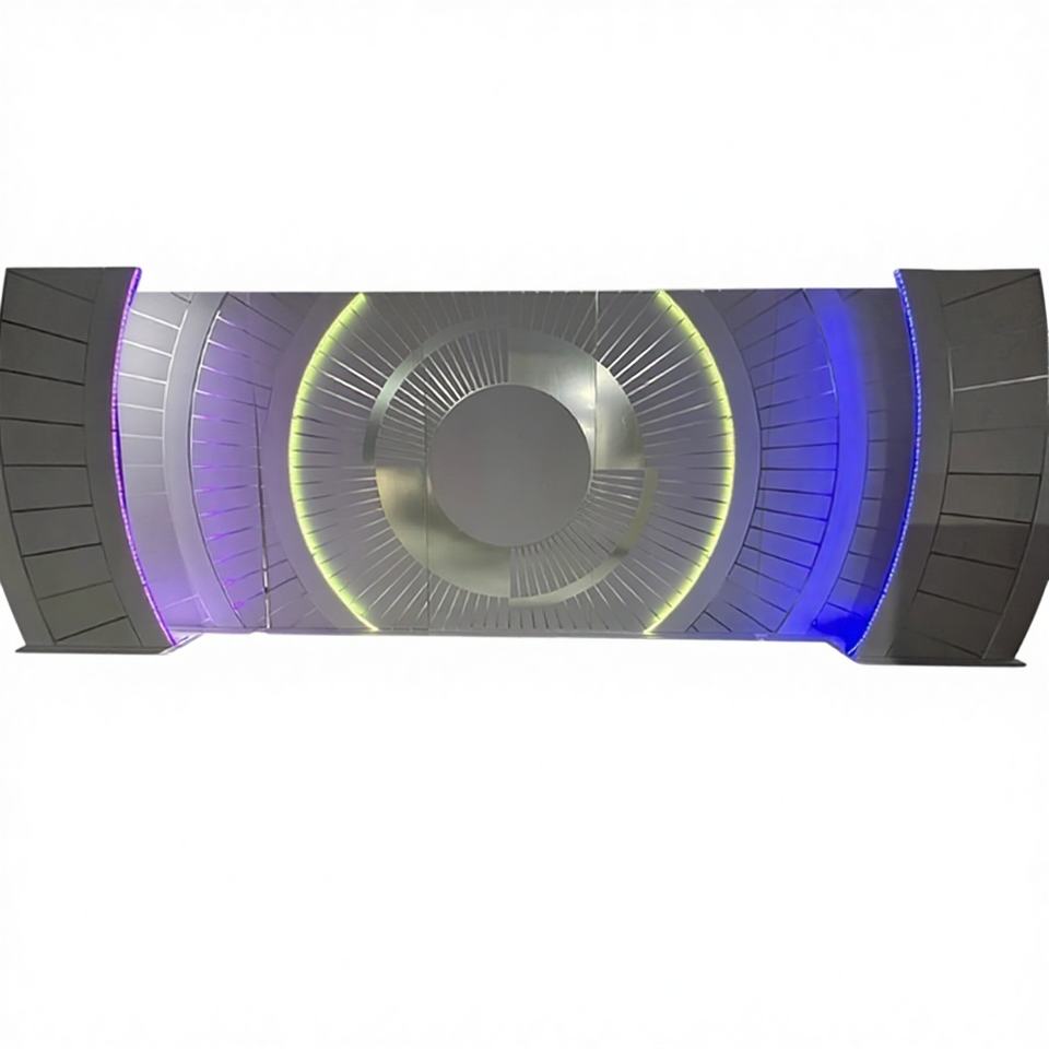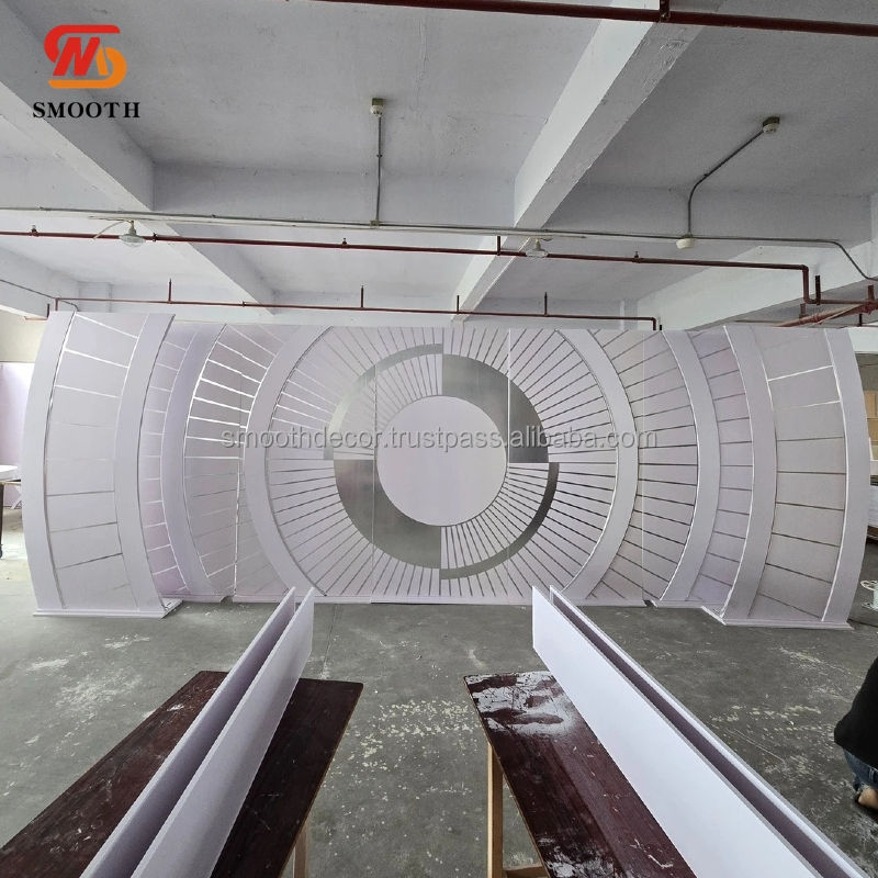 ฉากหลังอะคริลิคสีขาวขนาดใหญ่ หรูหรา ทนทาน พร้อมไฟ LED ติดตั้งบนขาตั้งโค้ง สำหรับตกแต่งเวทีงานแต่งงาน