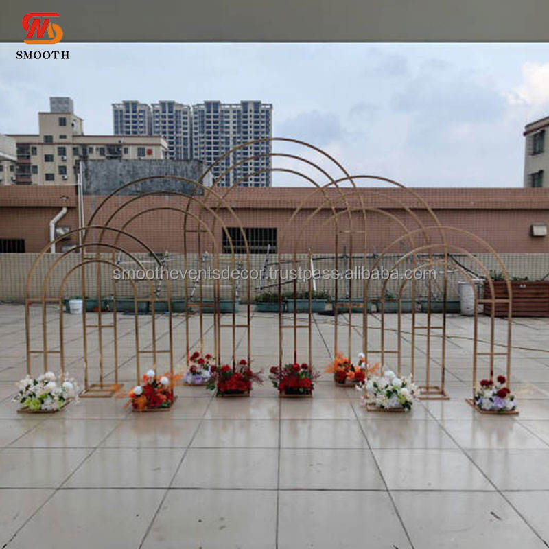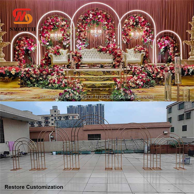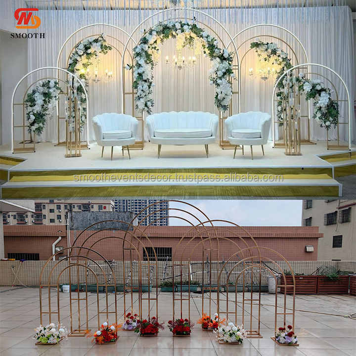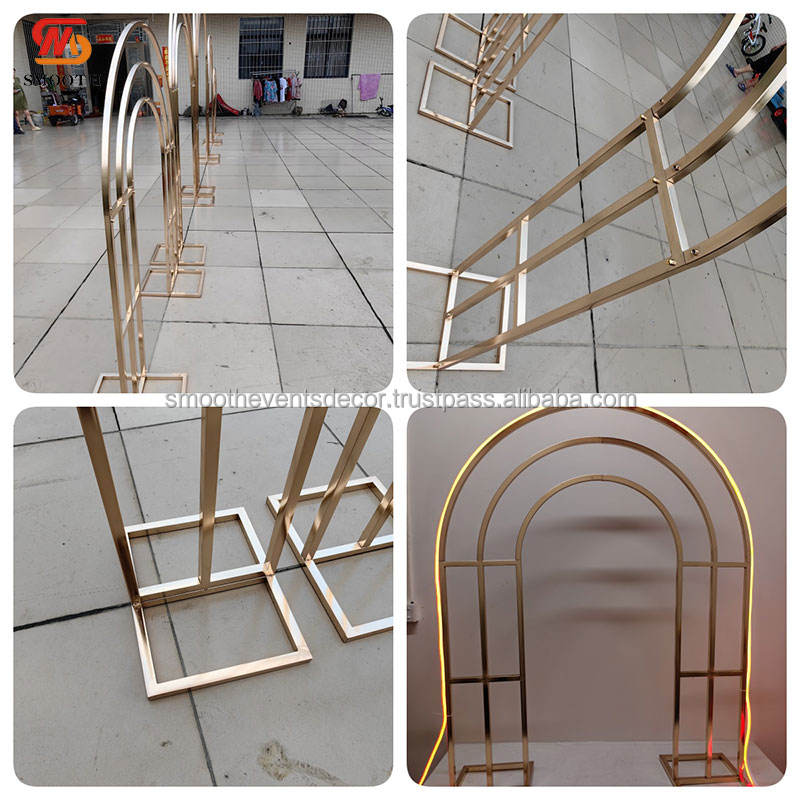 ชุดโครงเหล็กโค้งเคลือบทองเรียบหรู พร้อมขาตั้ง สำหรับตกแต่งงานแต่งงาน