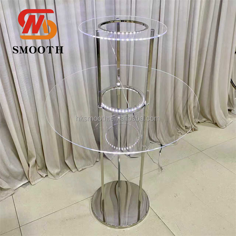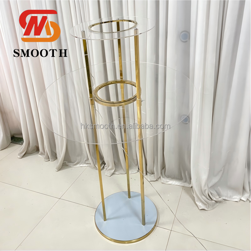 ขาตั้งดอกไม้โลหะดีไซน์เรียบหรู พร้อมแผ่นอะคริลิคสีทอง ไฟ LED สำหรับตกแต่งงานแต่งงาน
