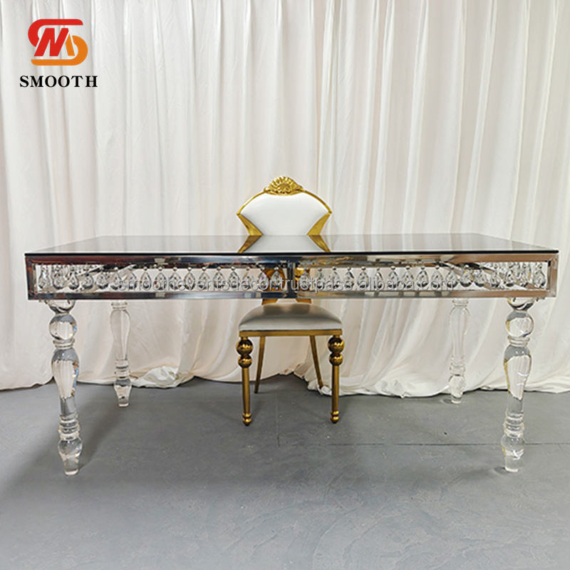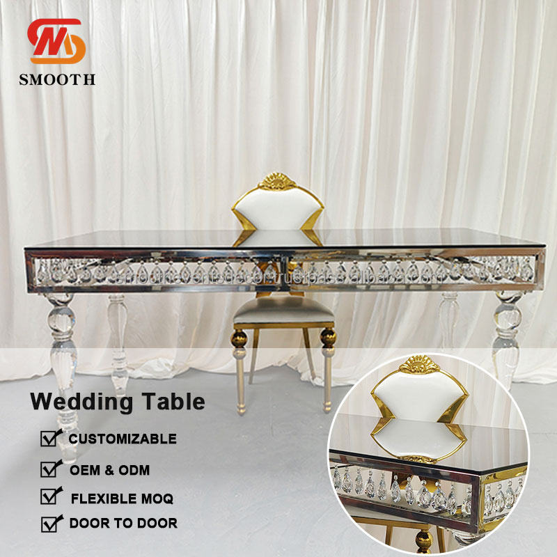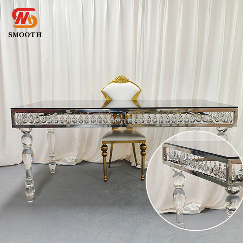 โต๊ะแต่งงานทำจากสเตนเลสสีเงินประดับคริสตัลรูปหัวใจทรงสี่เหลี่ยมเรียบหรู