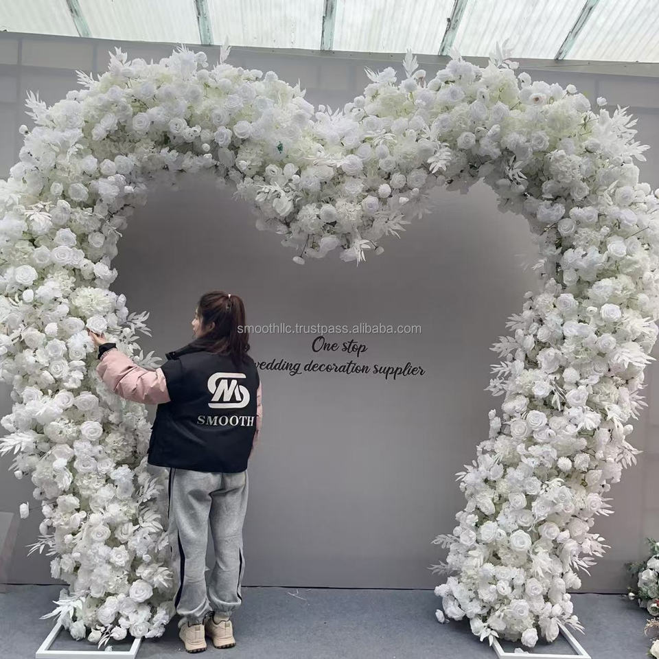 การตกแต่งเหตุการณ์ที่ราบรื่นดอกไม้สองด้านโค้งดอกกุหลาบสีขาวฉากหลังงานแต่งซุ้มดอกไม้