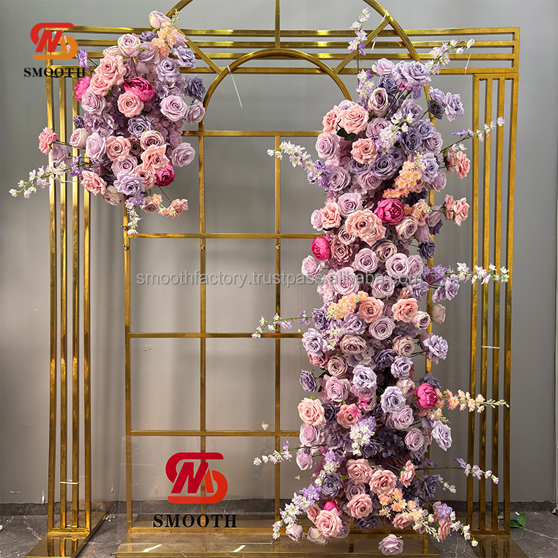 อุปกรณ์ตกแต่งเวทีทางเดินขึ้นชั้นวางดอกกุหลาบเทียมแบบเรียบการจัดดอกไม้ตกแต่งทางเดินกลางงานตามสั่ง