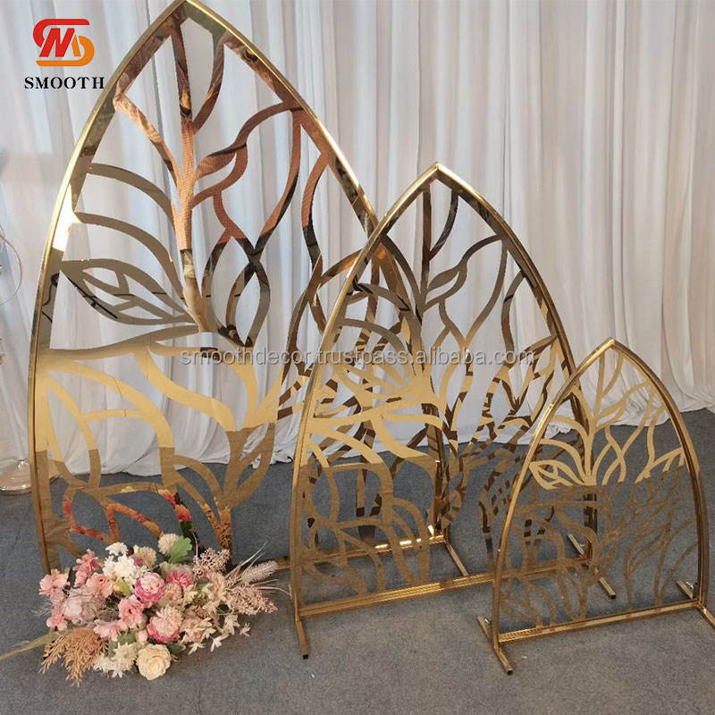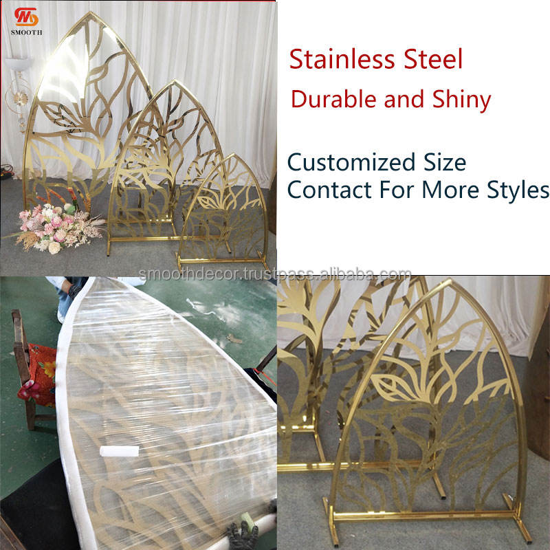 อุปกรณ์ตกแต่งพื้นหลังงานแต่งงานแบบโค้งทำจากสแตนเลสสตีลกลีบดอกไม้ขนาดต่างๆส่งตรงจากโรงงาน