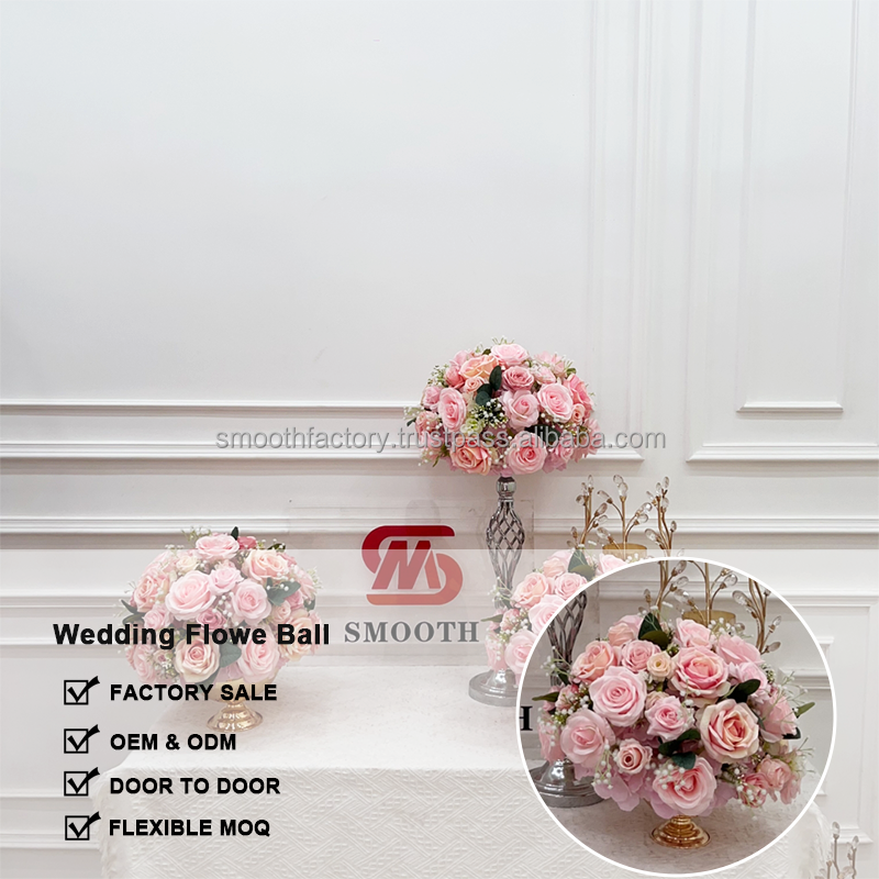 ลูกบอลดอกไม้สีชมพูสำหรับงานปาร์ตี้งานแต่งงานลูกบอลประดับกลางงานแฮนด์เมดจากโรงงาน