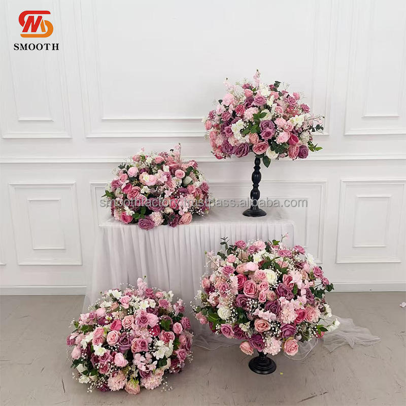 ลูกบอลดอกไม้ประดิษฐ์ทำมือจากโรงงาน SMOOTH ดอกกุหลาบสีชมพูผ้าไหมประดิษฐ์ พร้อมดอกยิปโซฟิลลา สัมผัสนุ่มเหมือนจริง สำหรับวันวาเลนไทน์