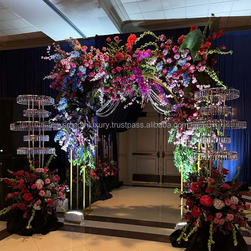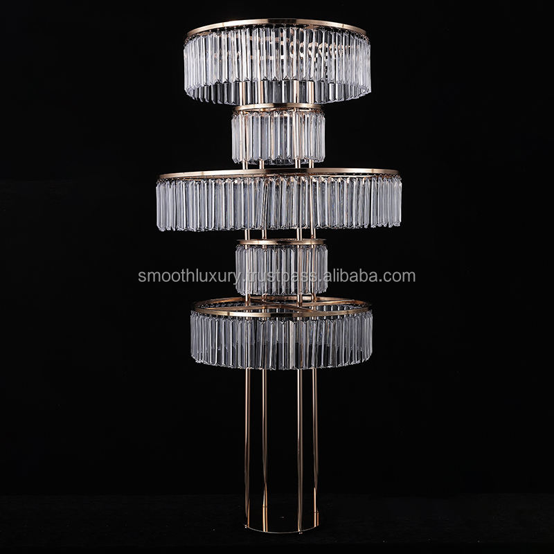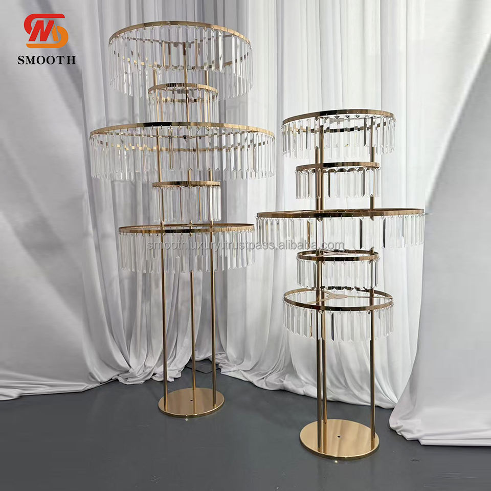 ชิงช้าสวรรค์สีทองสำหรับงานแต่งงานที่วางกลางโต๊ะทำจากอะคริลิคพู่ประดับแถบคริสตัล