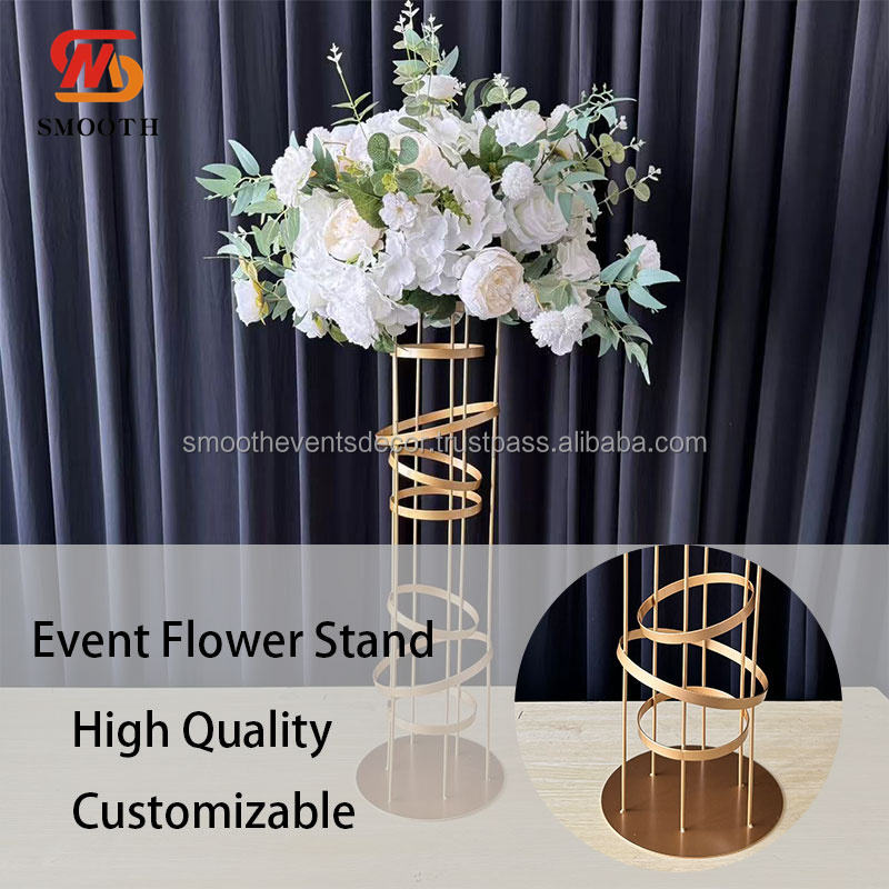 ที่วางตรงกลางดอกไม้โลหะสีทองแบบเกลียวที่ตั้งตรงกลางดอกไม้แบบเรียบสำหรับงานเลี้ยงบนโต๊ะ