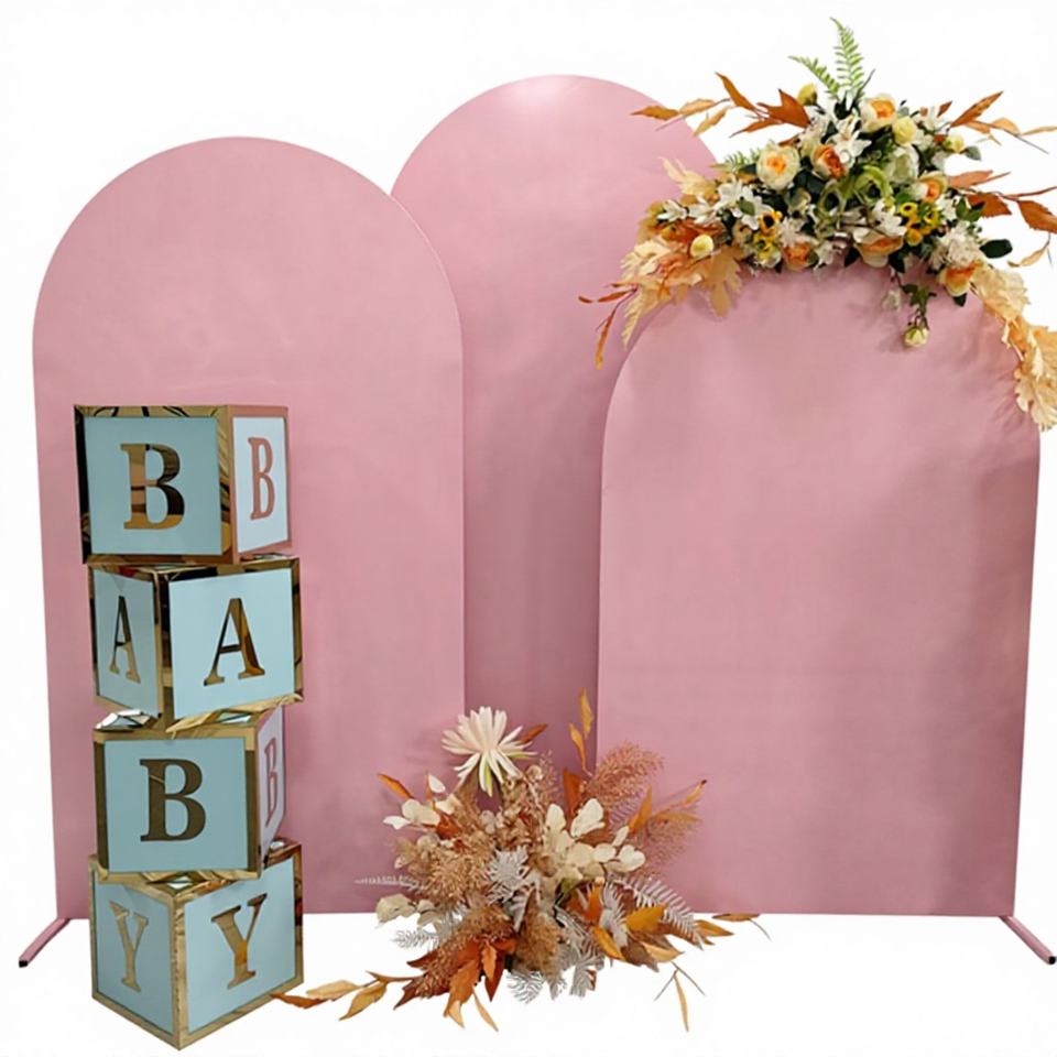 ฉากตกแต่งงานแต่งงานรูปทรงเรขาคณิตสีทอง/สีเงิน ดีไซน์กระจกสแตนเลส พร้อมผ้าม่านและกรอบดอกไม้ติดผนัง