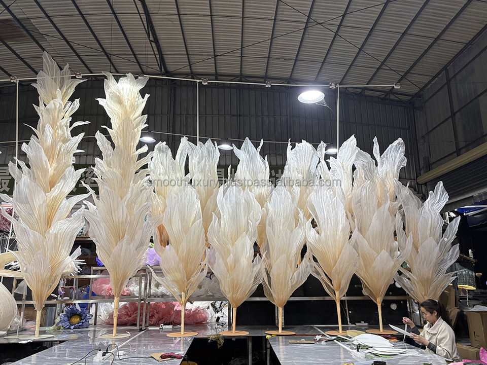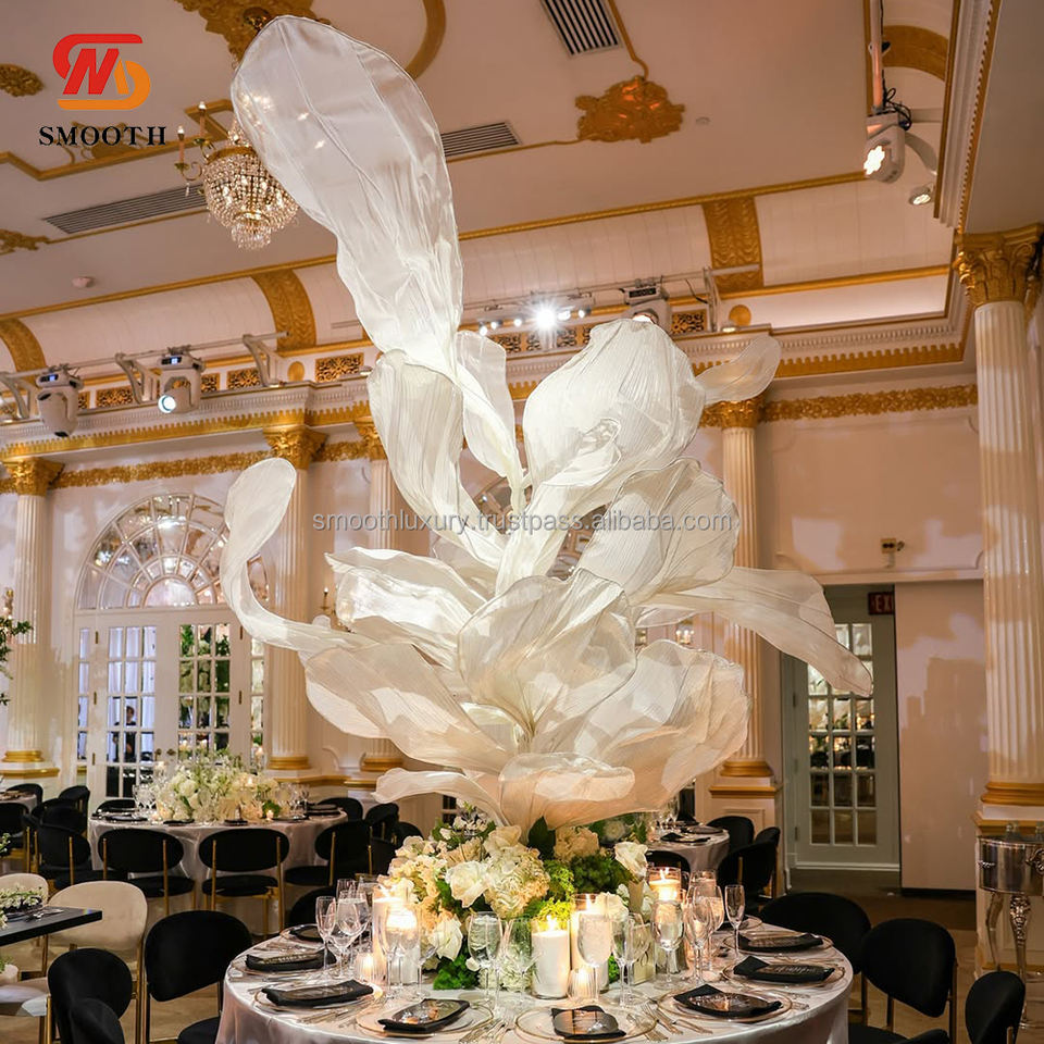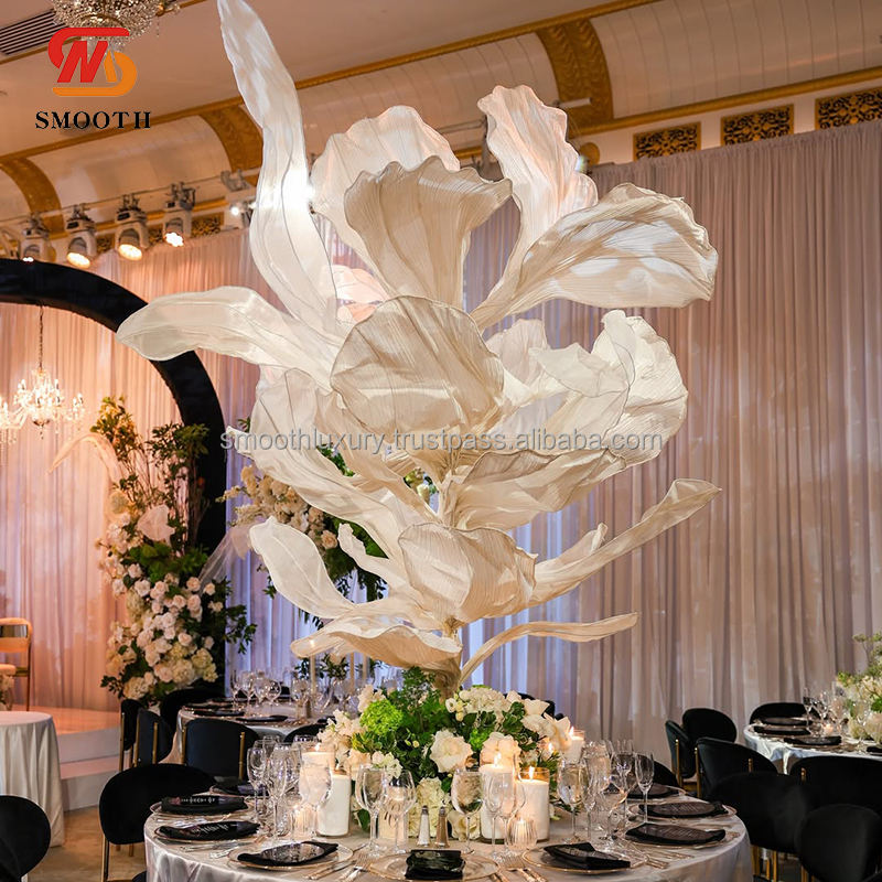 ผ้าไหมโปร่งบางเรียบสีทองแชมเปญโต๊ะแต่งงานกลางดอกไม้ขนาดใหญ่ขาตั้งฉากหลังอุปกรณ์ตกแต่งสำหรับถ่ายภาพ