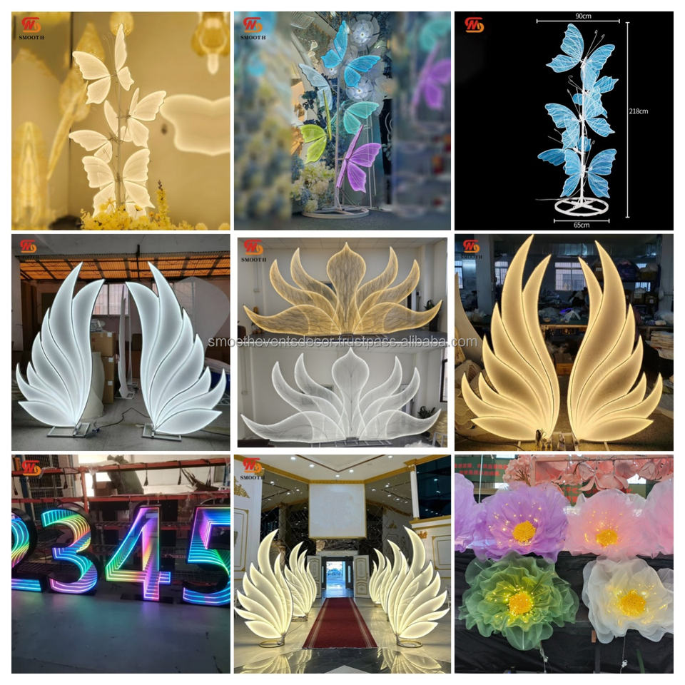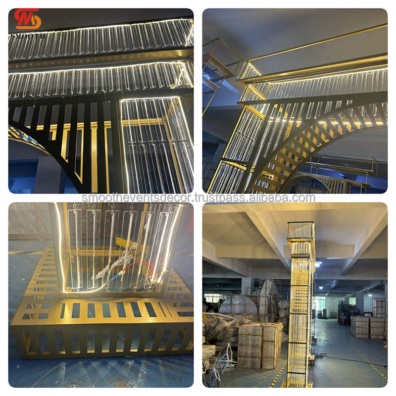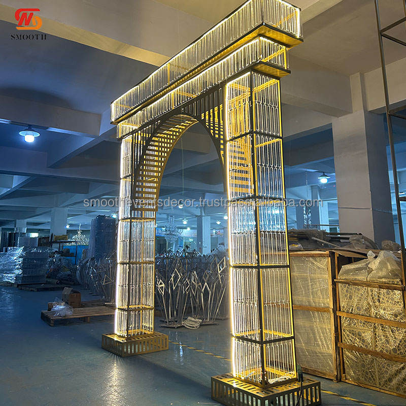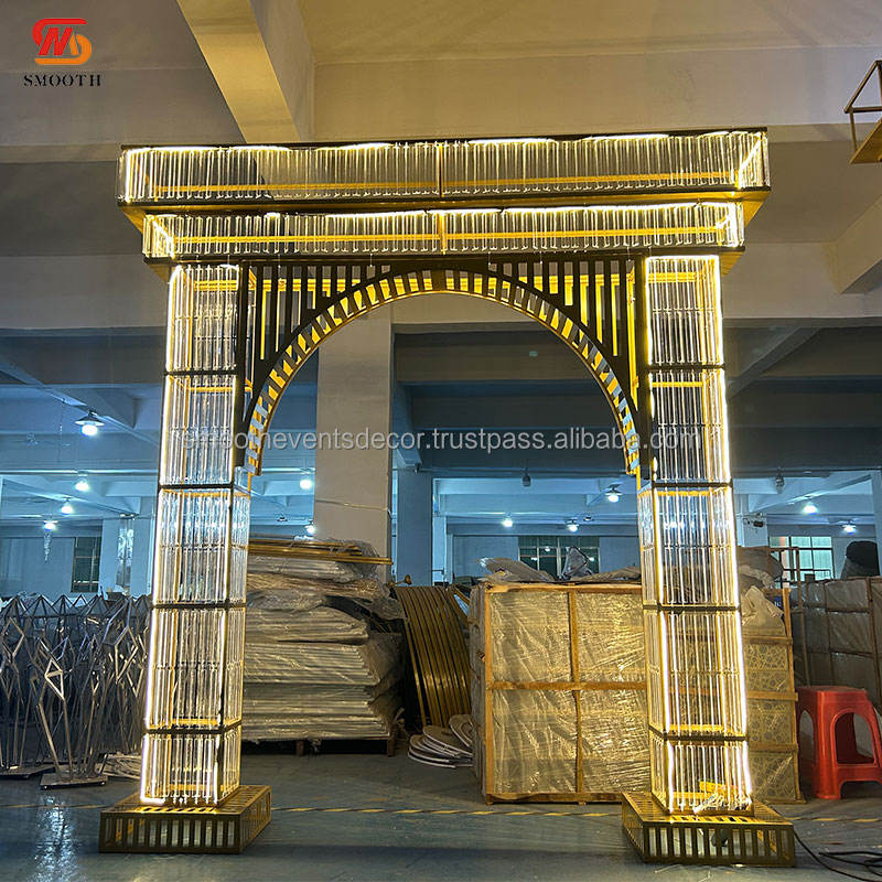 โครงเหล็กโค้งเรืองแสงสีทองเรียบหรู พร้อมไฟ LED สำหรับตกแต่งงานอีเว้นท์