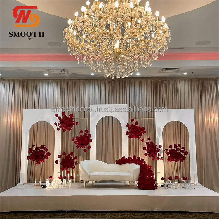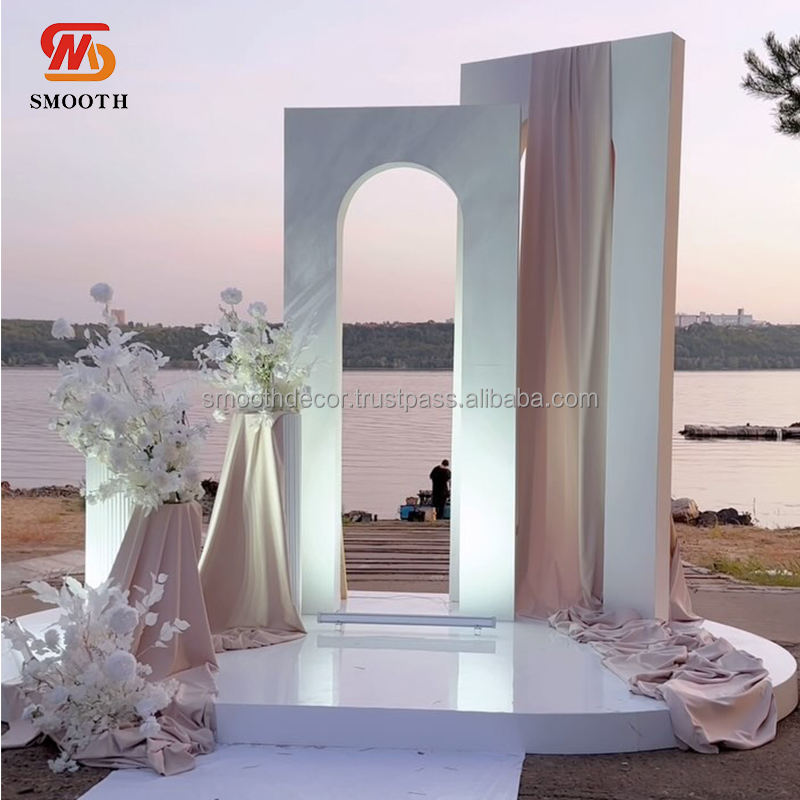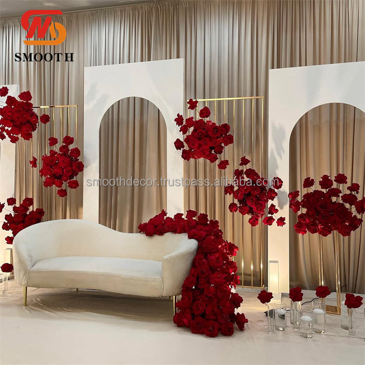 ฉากหลังงานแต่งงานทรงสี่เหลี่ยมผืนผ้าสแตนเลสสีทอง/เงินแบบเรียบหรู พร้อมดีไซน์กระจกเงาสำหรับตกแต่งงานอีเว้นท์