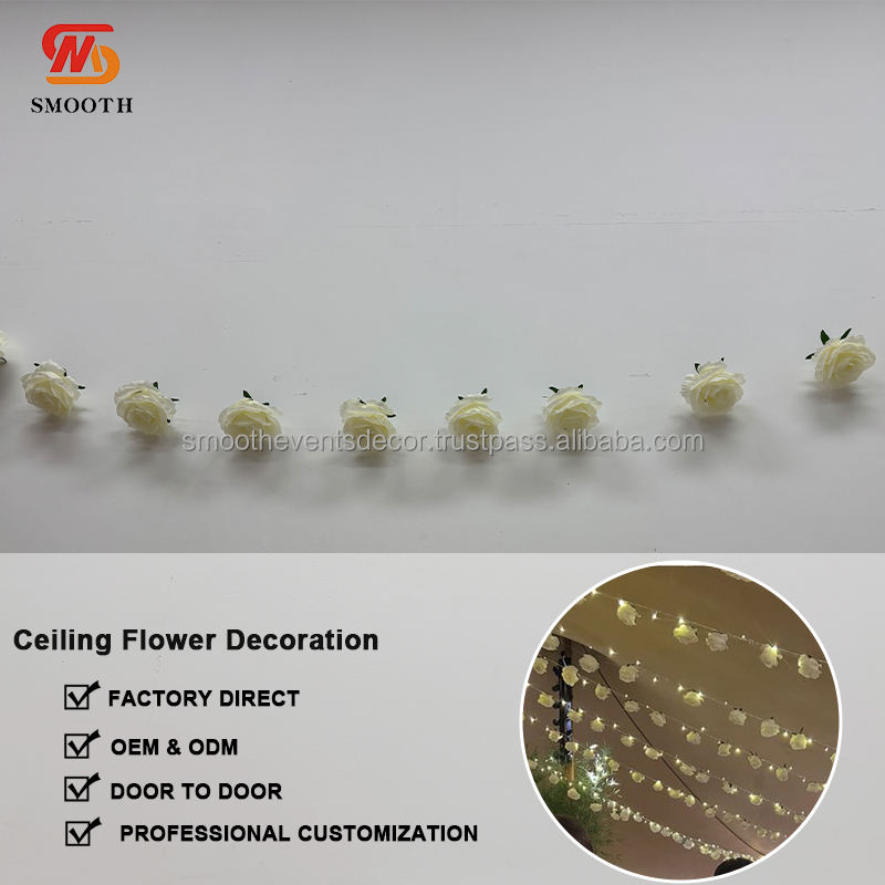 สายไหมเทียมทำด้วยมือแบบเรียบสำหรับตกแต่งดอกไม้ติดเพดานแถบดอกไม้สำหรับจัดงานแต่งงาน