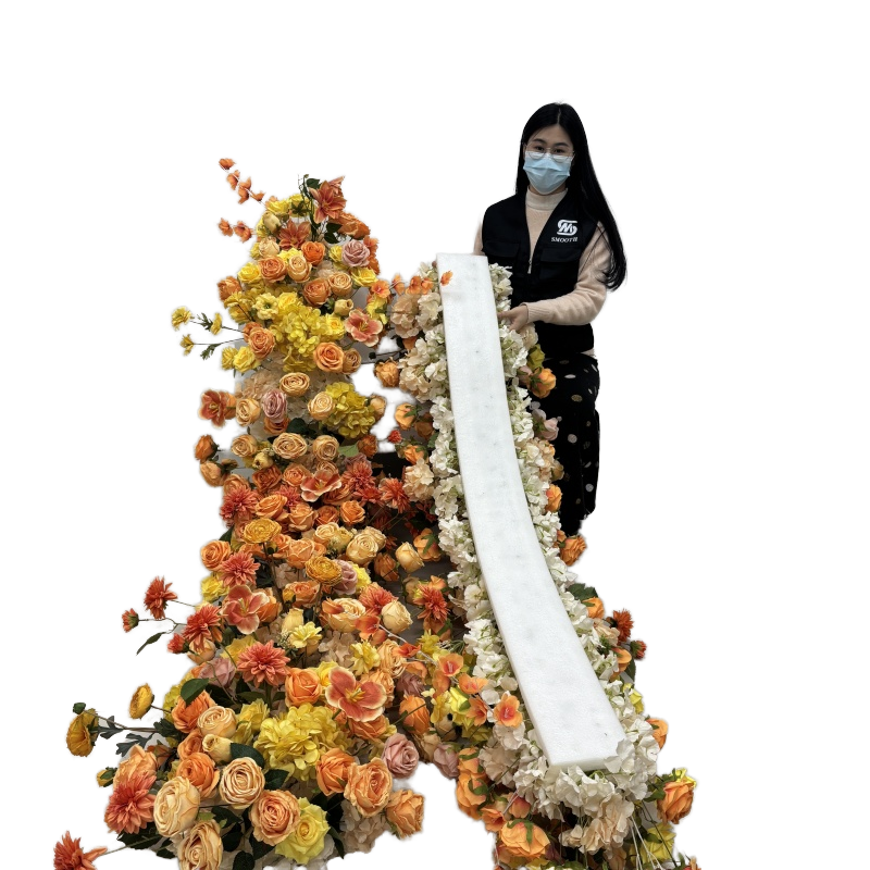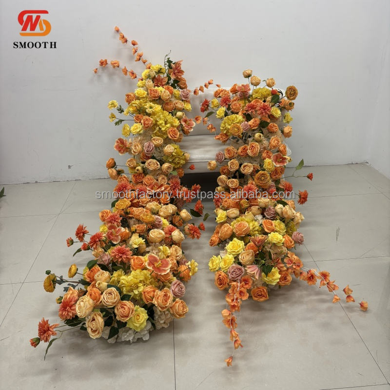 ผ้าคาดตกแต่งงานแต่งงานงานปาร์ตี้ผ้าคาดคาดดอกไม้สีส้มสีเหลืองงานแฮนด์เมดเรียบ
