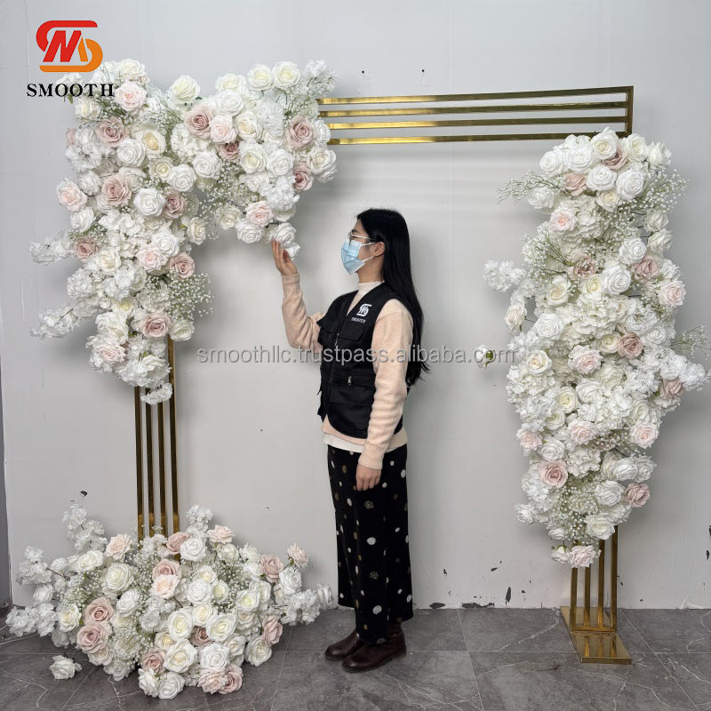 การจัดดอกไม้ประดิษฐ์สีขาวสำหรับตกแต่งเวทีงานแต่งงานแบบแฮนด์เมด ดอกกุหลาบและดอกยิปโซฟิลลา