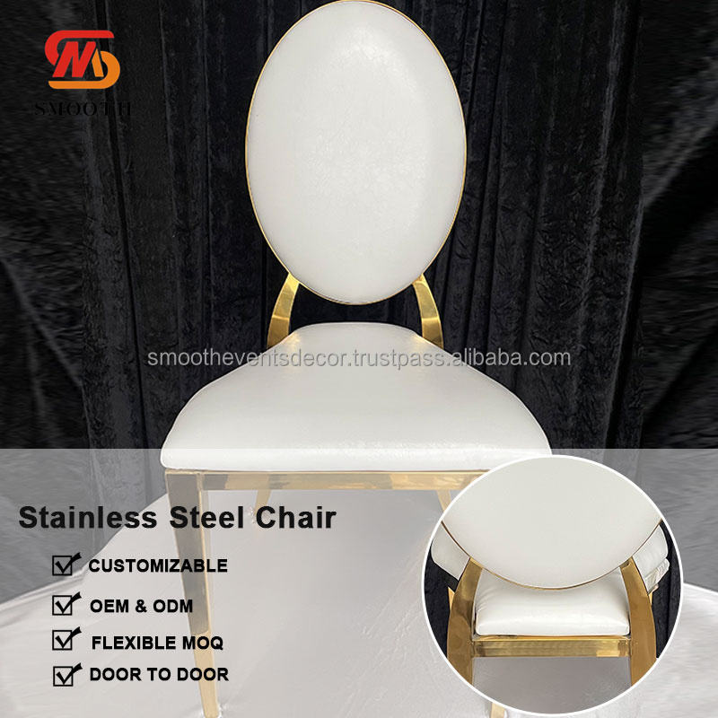 เก้าอี้สแตนเลสทรงรีสีทองเรียบหรูเก้าอี้จัดงานแต่งงานสำหรับงานปาร์ตี้ในโรงแรม