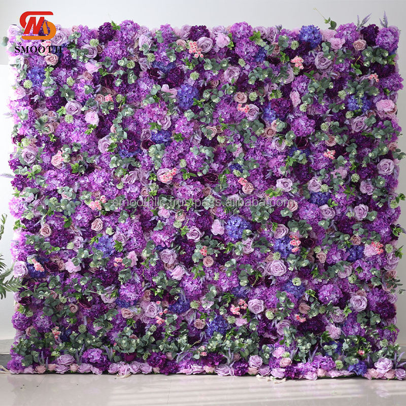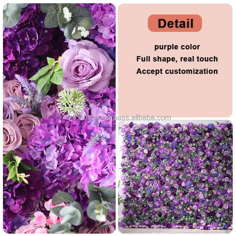 เรียบคุณภาพสูงวัสดุผ้าไหมสัมผัสจริงดอกกุหลาบดอกไม้ผนังสำหรับตกแต่งบ้านผนังดอกไม้ดอกไม้สีม่วงใหม่